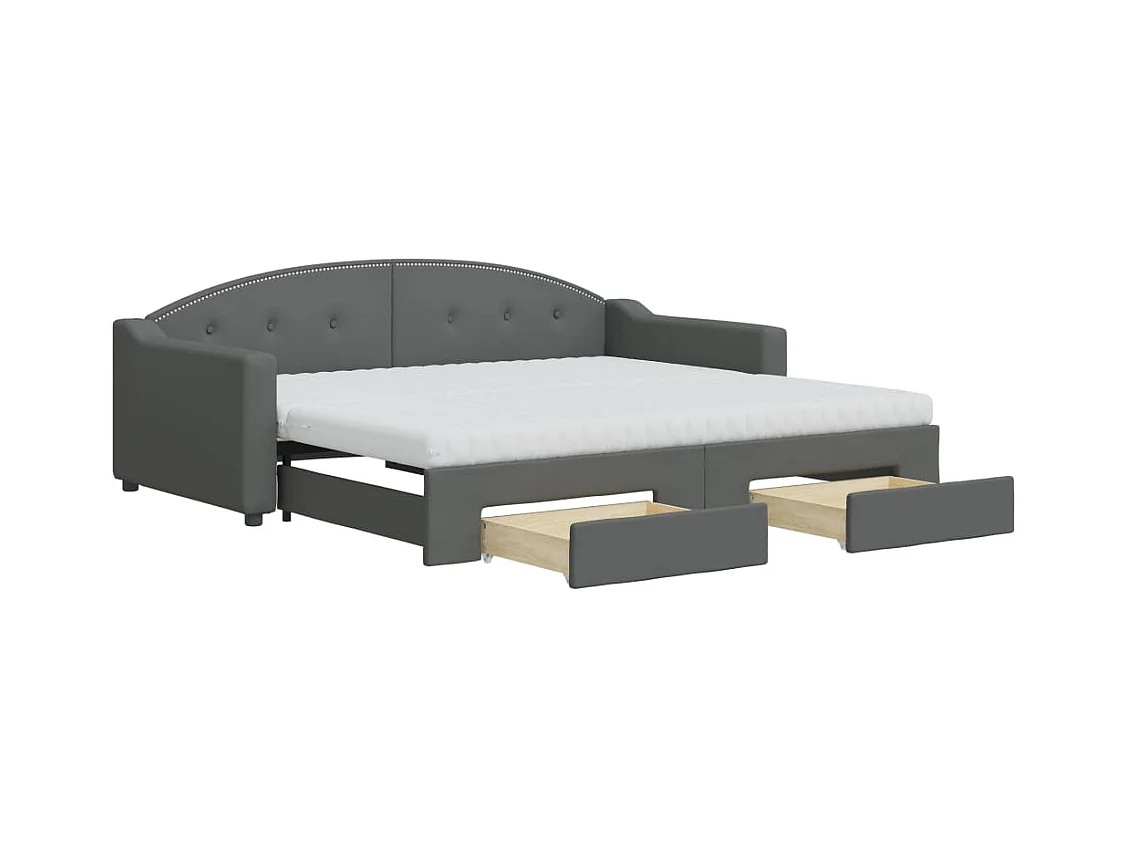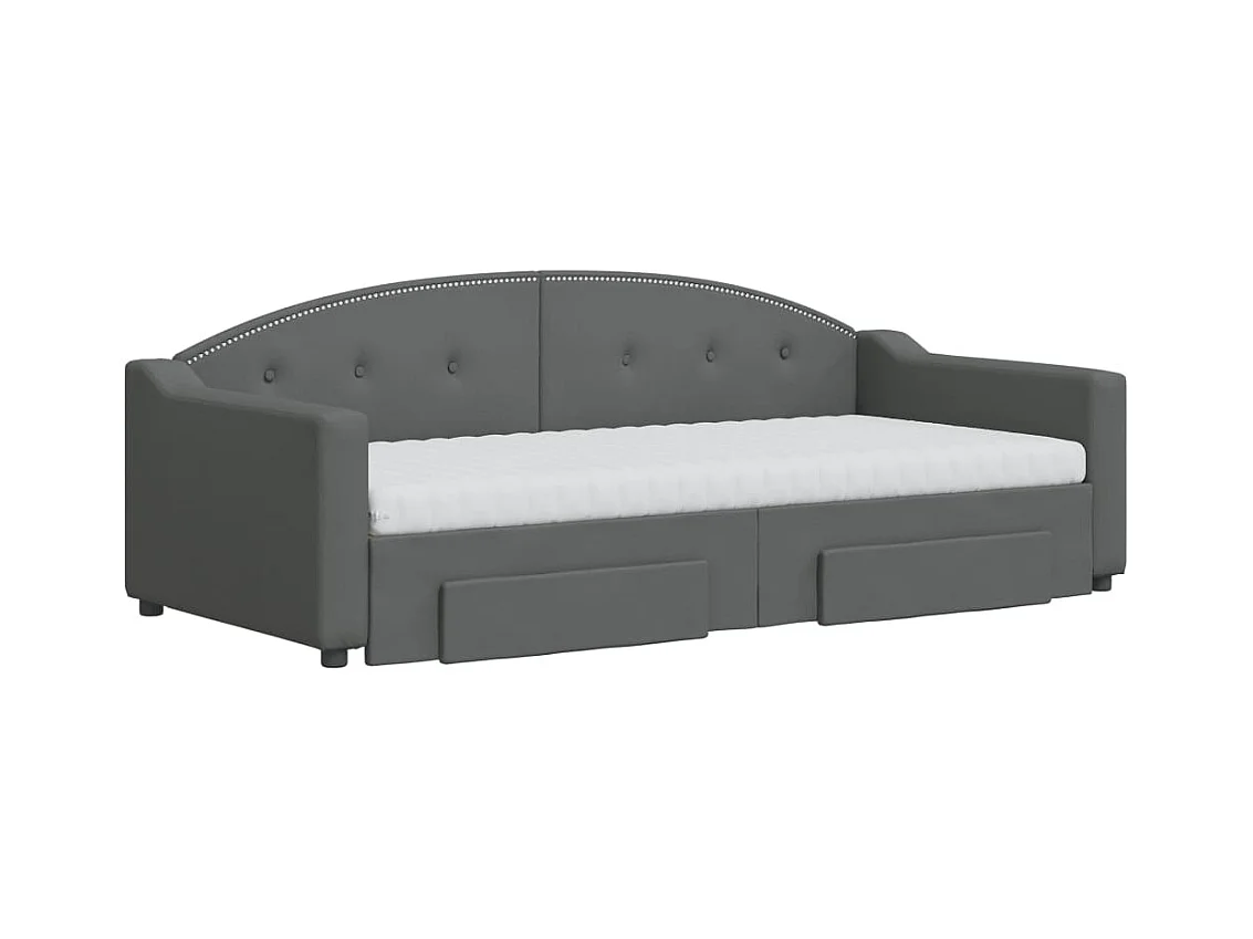 Lit de jour avec gigogne et tiroirs gris foncé 90x190 cm tissu
