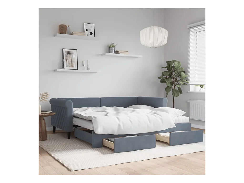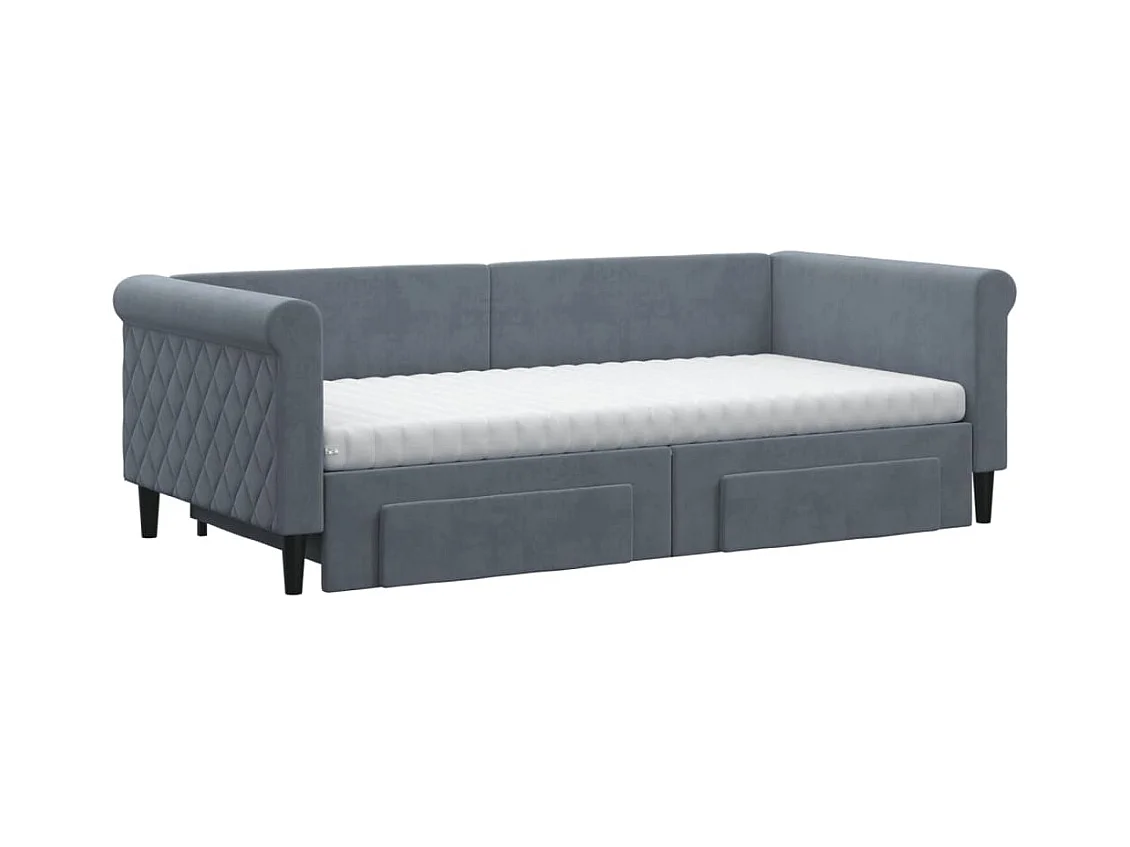 Lit de jour avec gigogne et tiroirs gris foncé 90x190cm velours