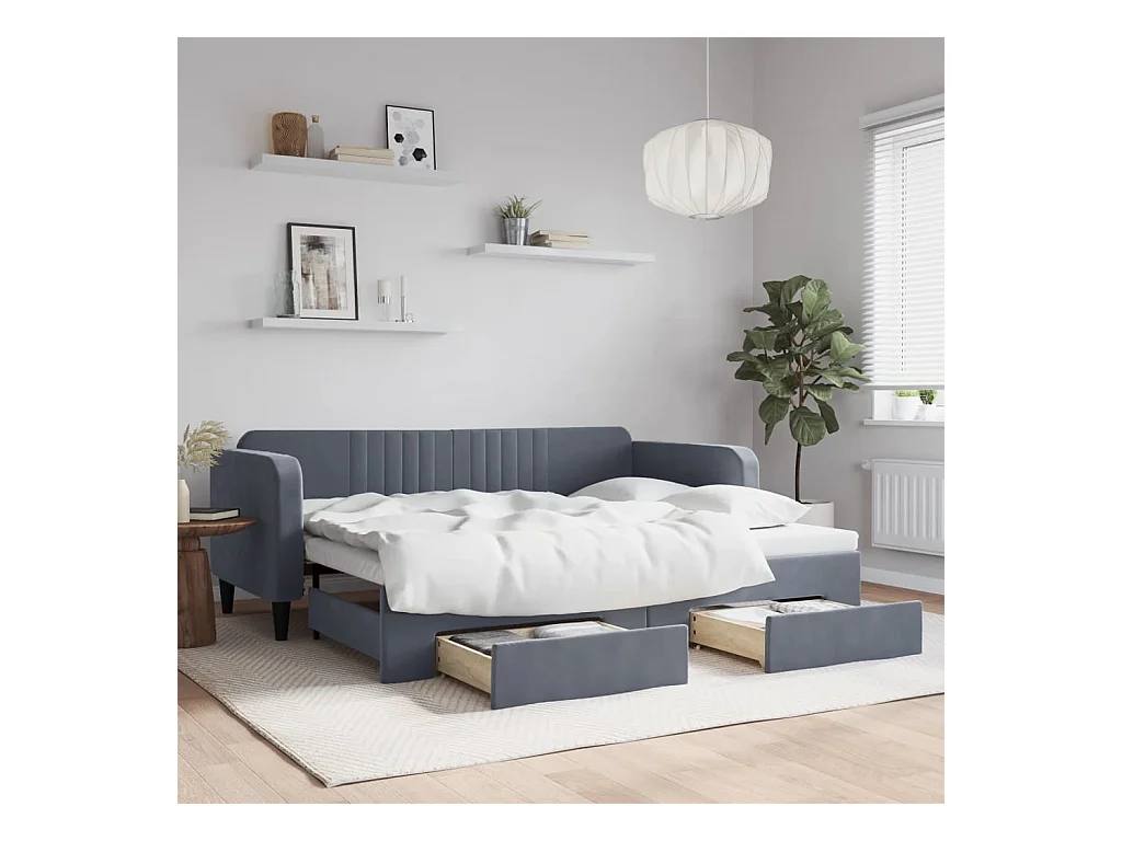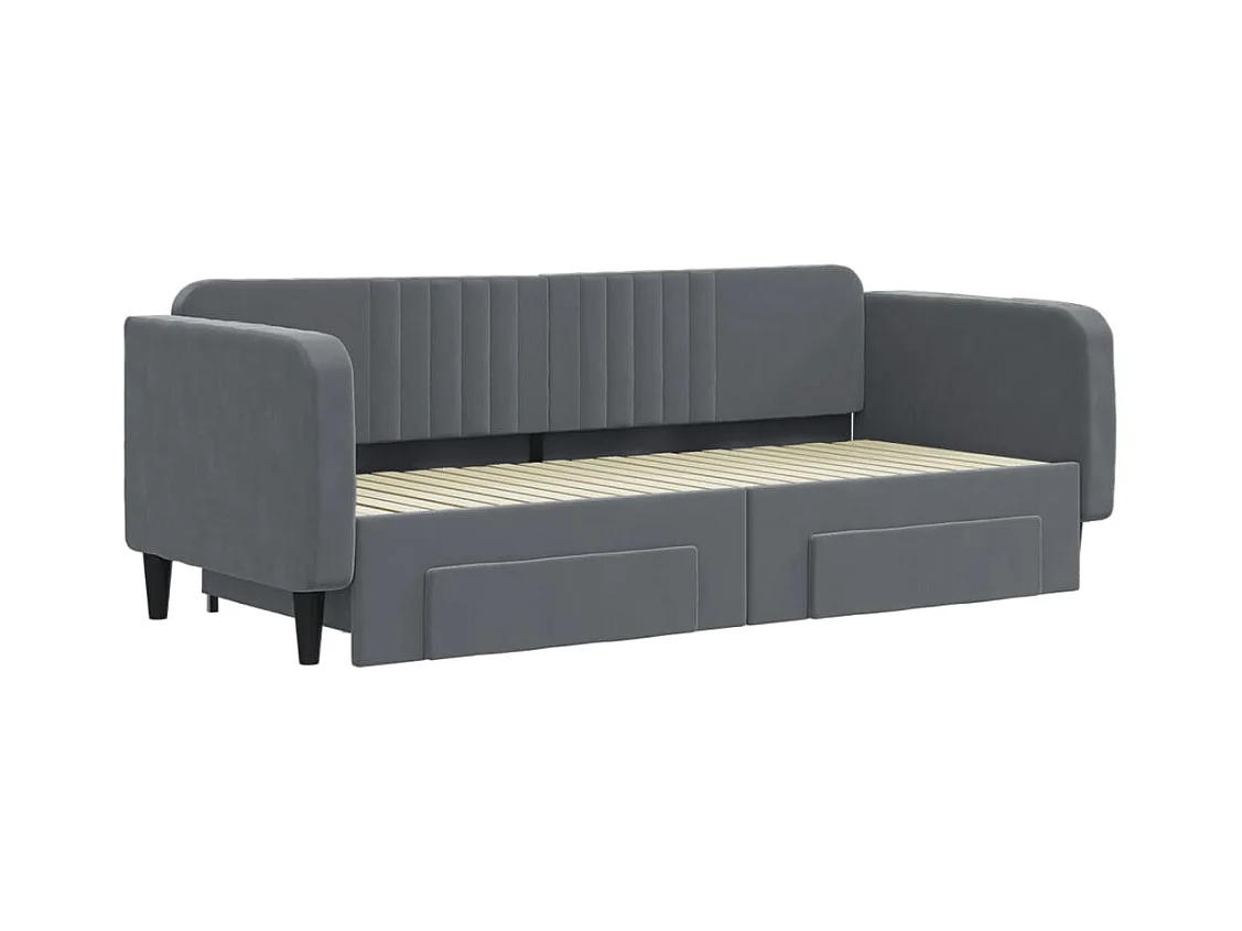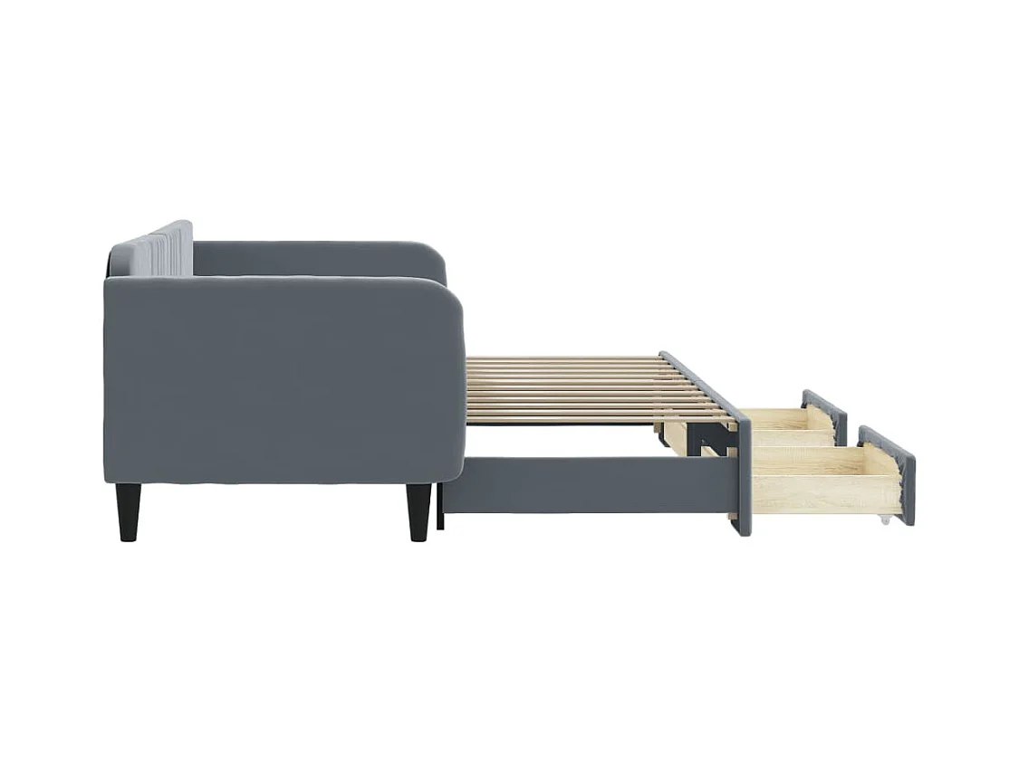 Lit de jour avec gigogne et tiroirs gris foncé 90x200cm velours