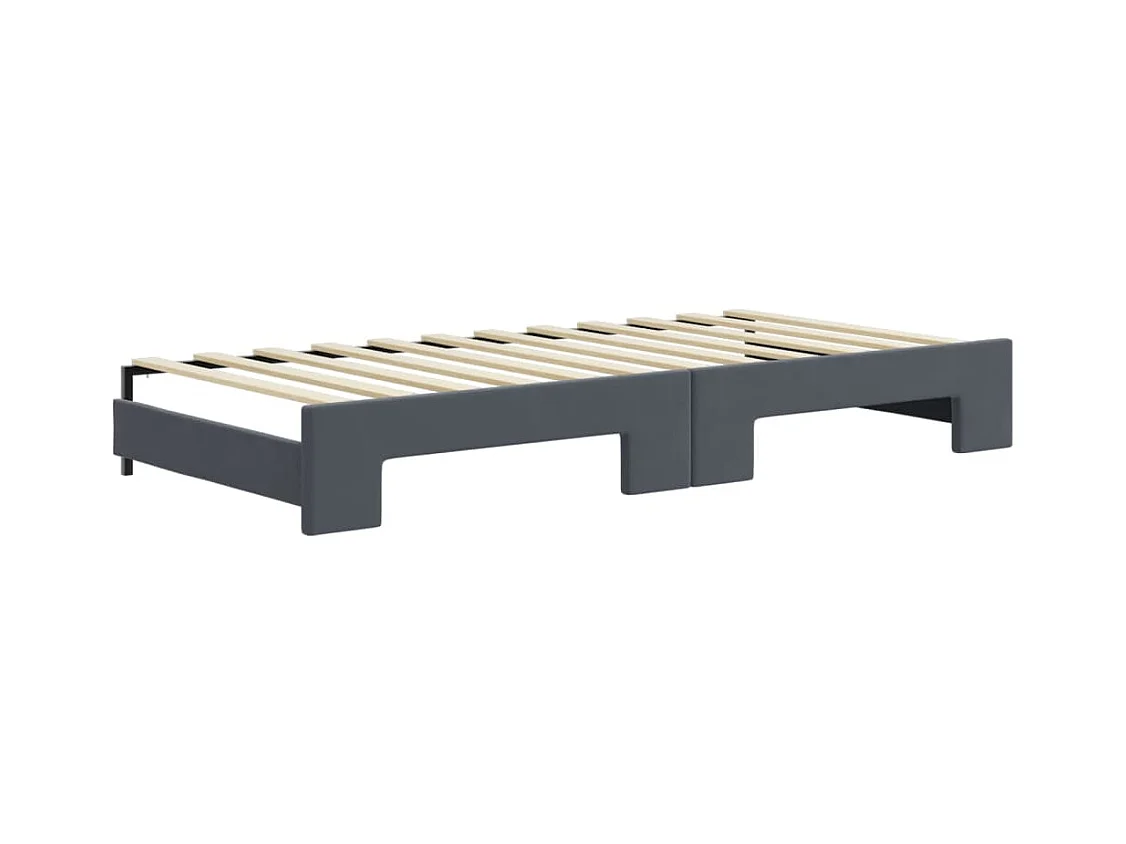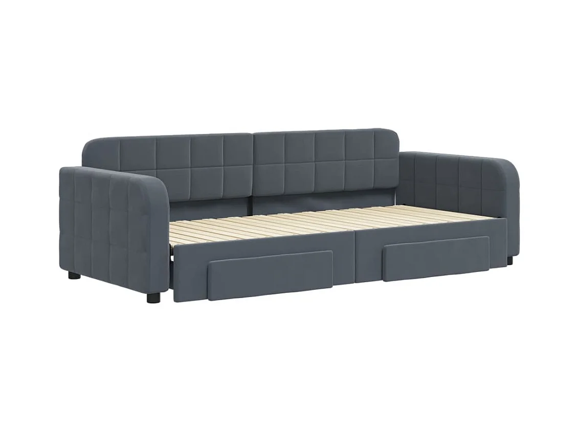 Lit de jour avec gigogne et tiroirs gris foncé 90x200cm velours