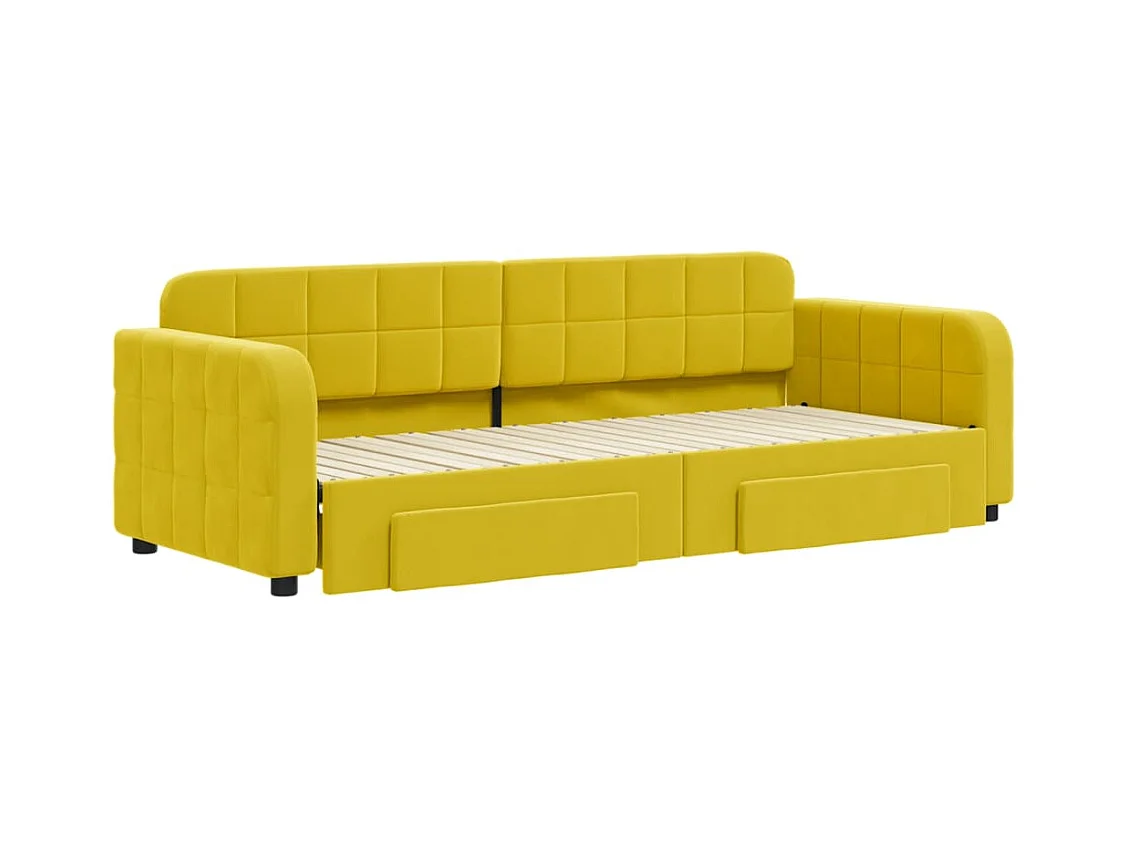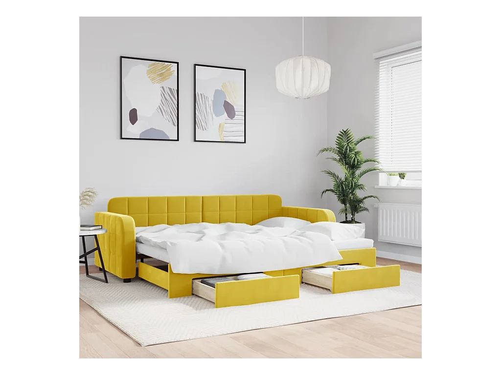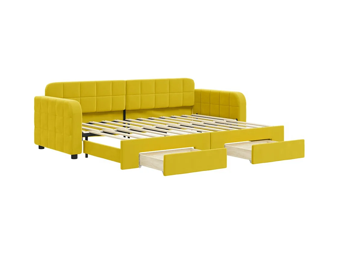 Lit de jour avec gigogne et tiroirs jaune 80x200 cm velours