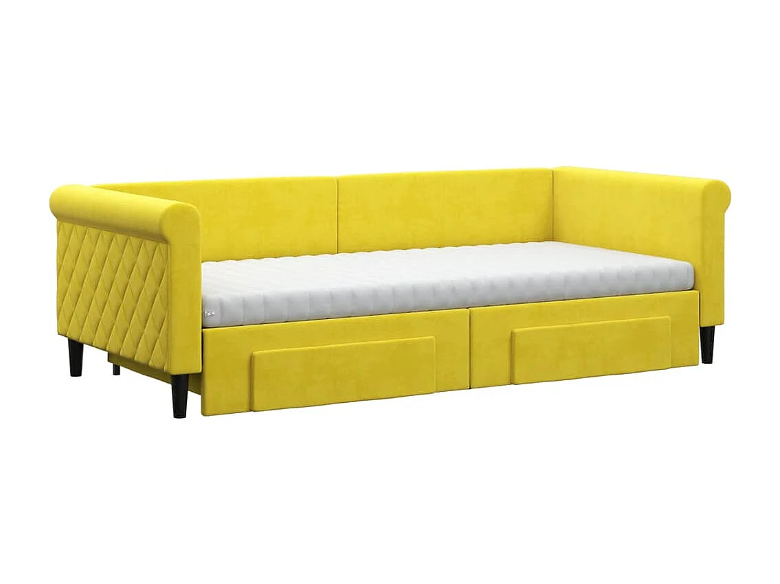 Lit de jour avec gigogne et tiroirs jaune 90x200 cm velours