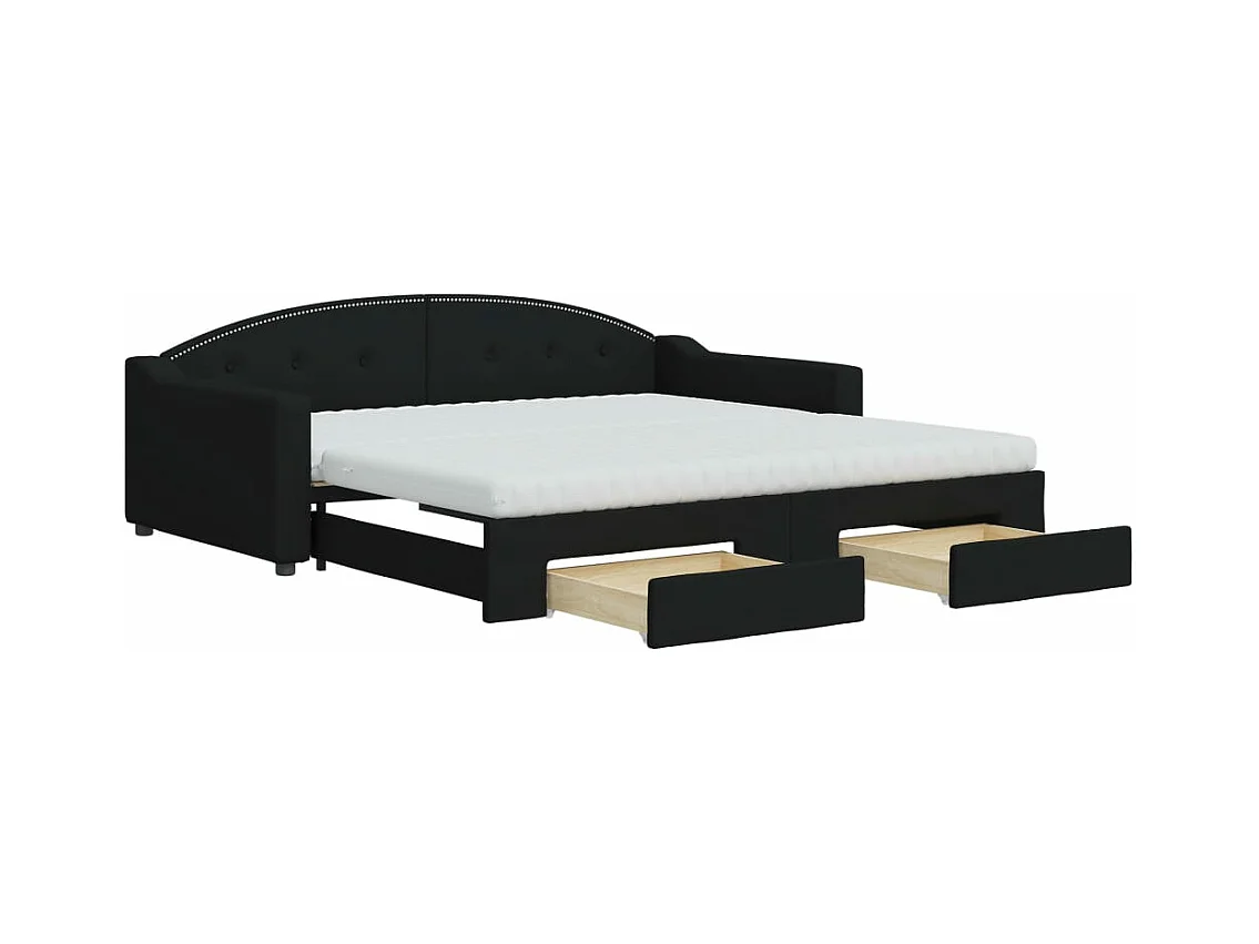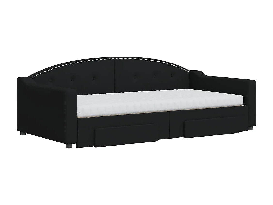 Lit de jour avec gigogne et tiroirs noir 100x200 cm tissu