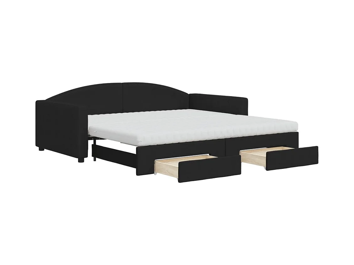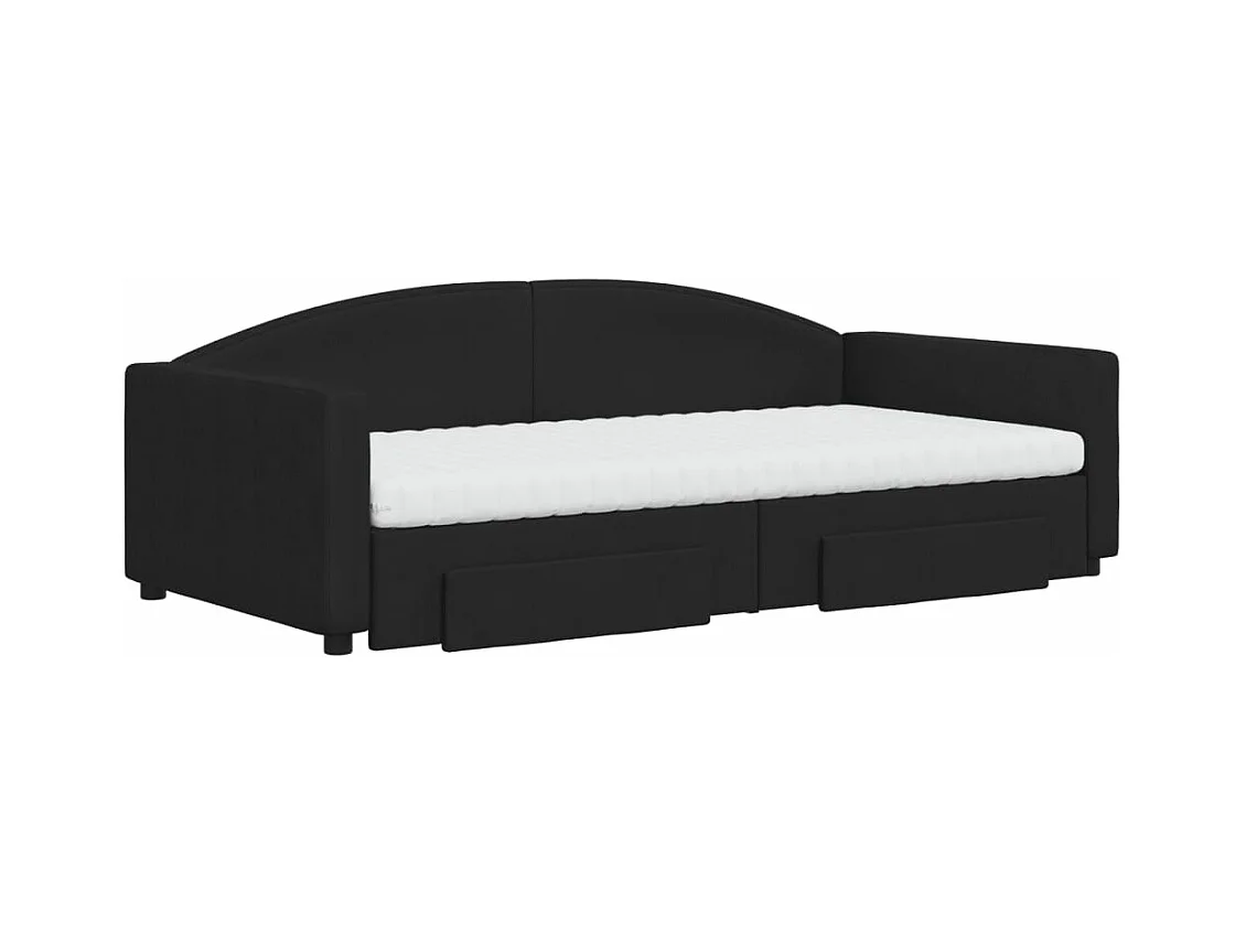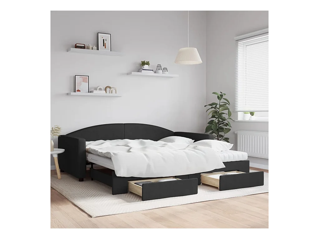Lit de jour avec gigogne et tiroirs noir 100x200 cm tissu