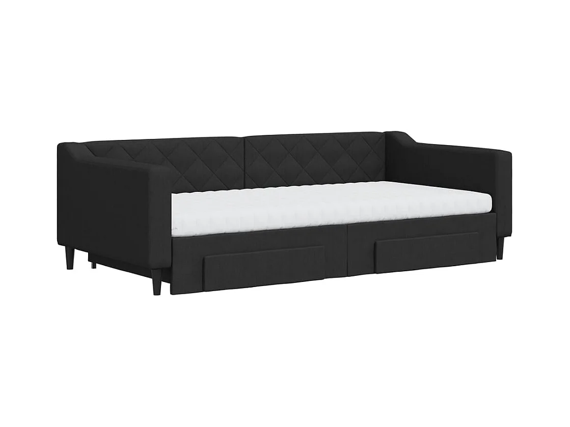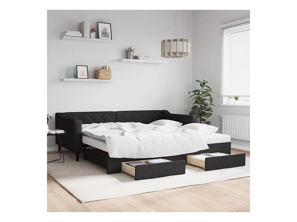 Lit de jour avec gigogne et tiroirs noir 100x200 cm tissu