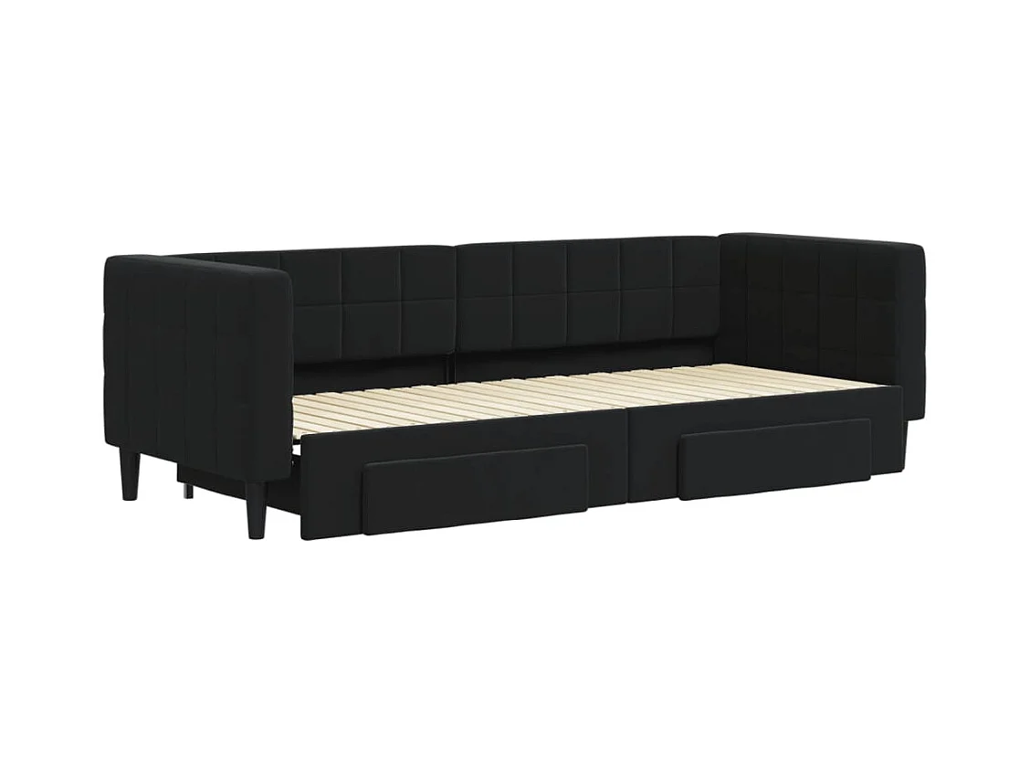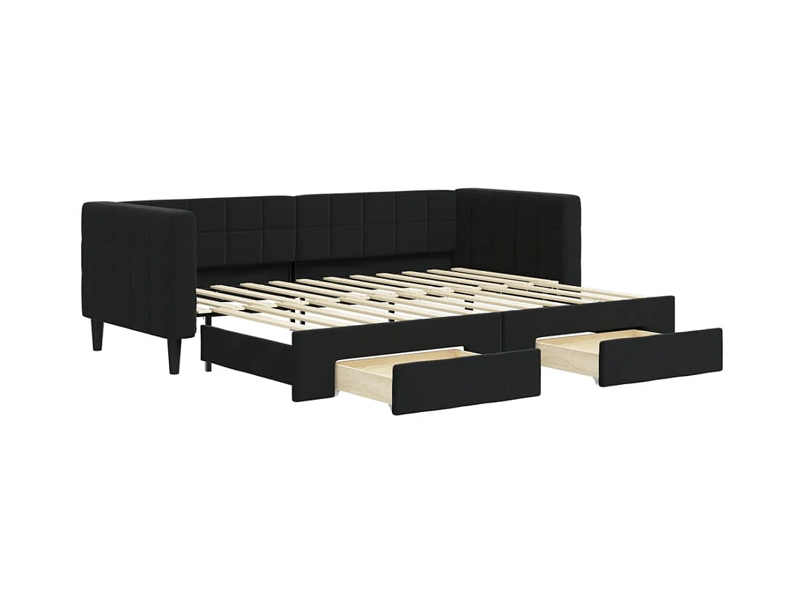Lit de jour avec gigogne et tiroirs noir 80x200 cm velours