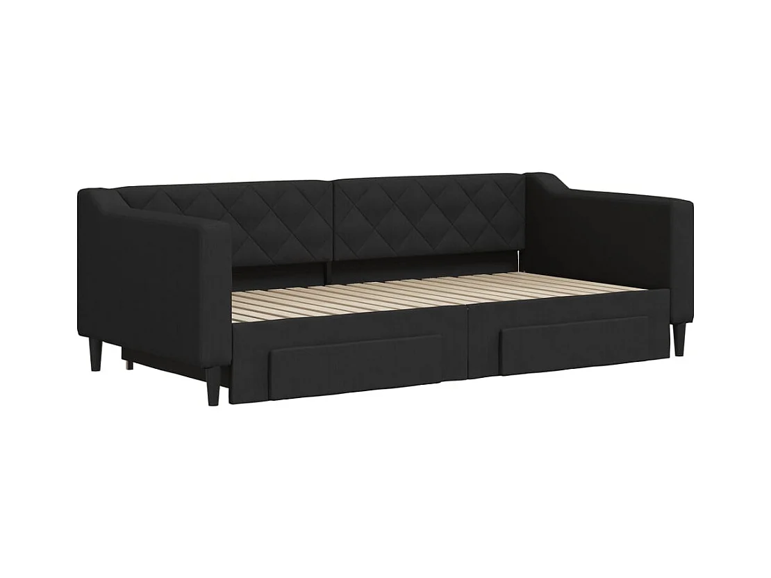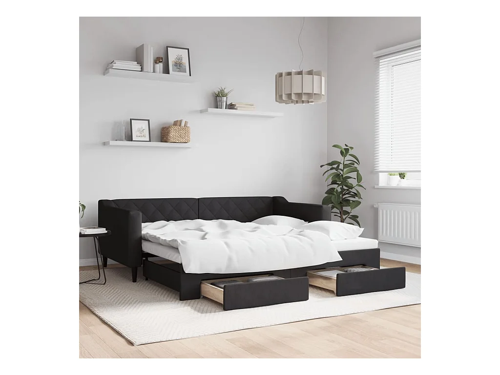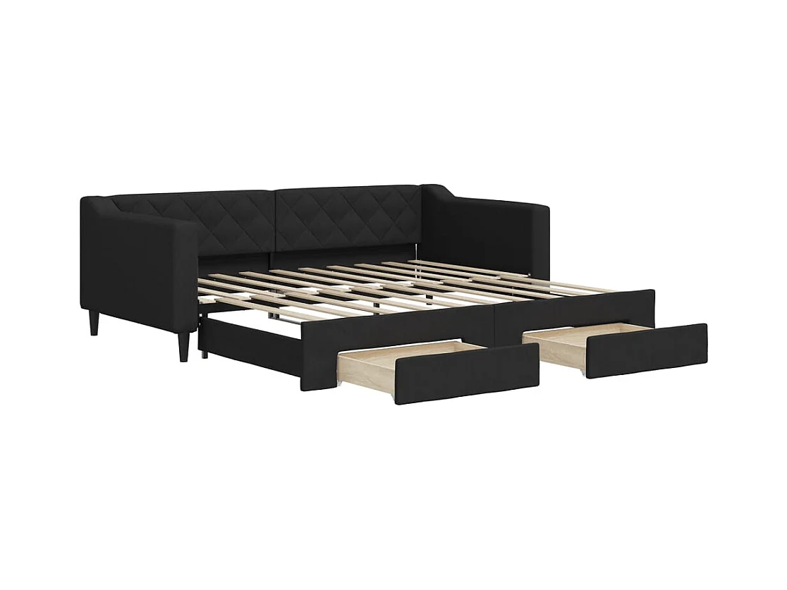 Lit de jour avec gigogne et tiroirs noir 90x190 cm tissu
