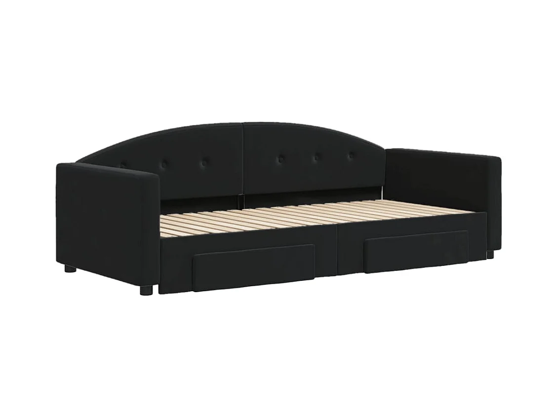 Lit de jour avec gigogne et tiroirs noir 90x190 cm velours
