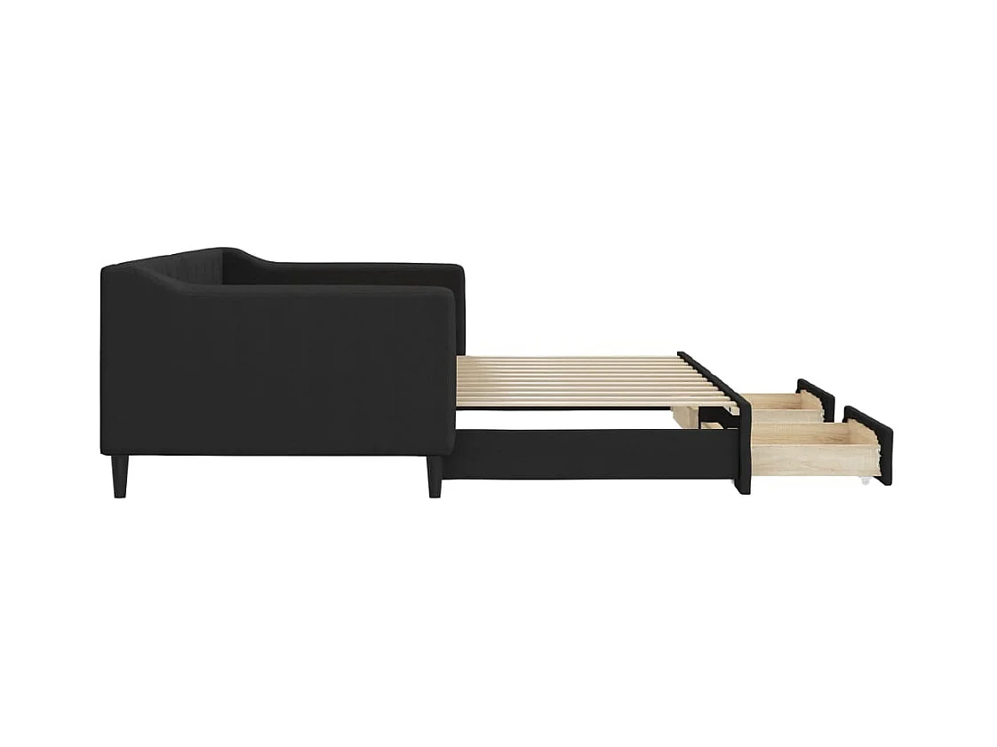 Lit de jour avec gigogne et tiroirs noir 90x200 cm tissu