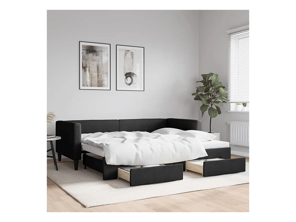 Lit de jour avec gigogne et tiroirs noir 90x200 cm tissu