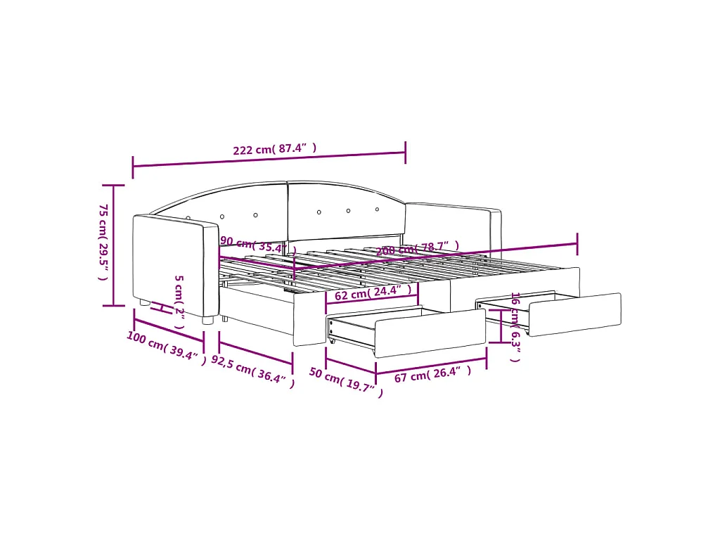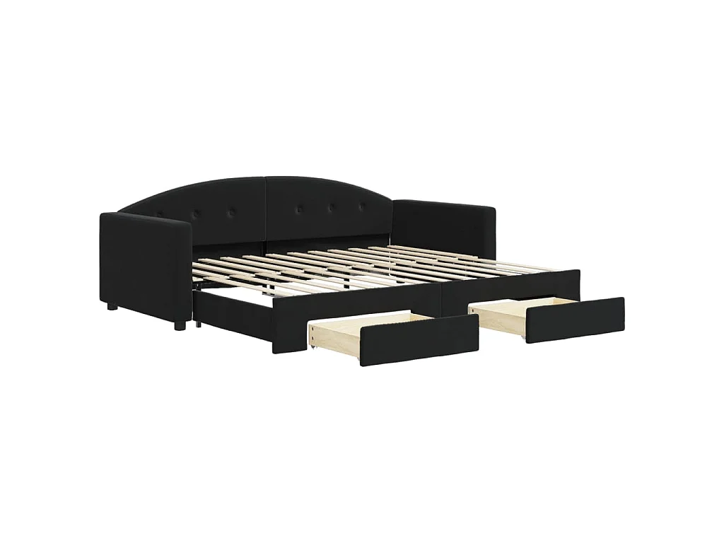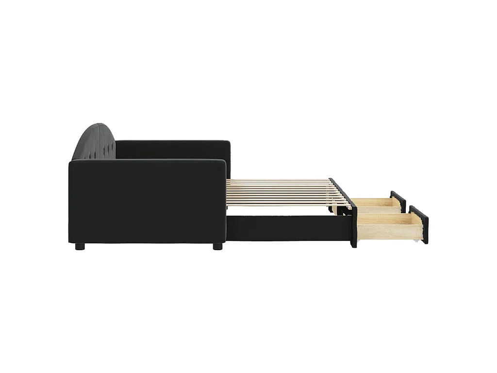 Lit de jour avec gigogne et tiroirs sans matelas noir 90x200 cm