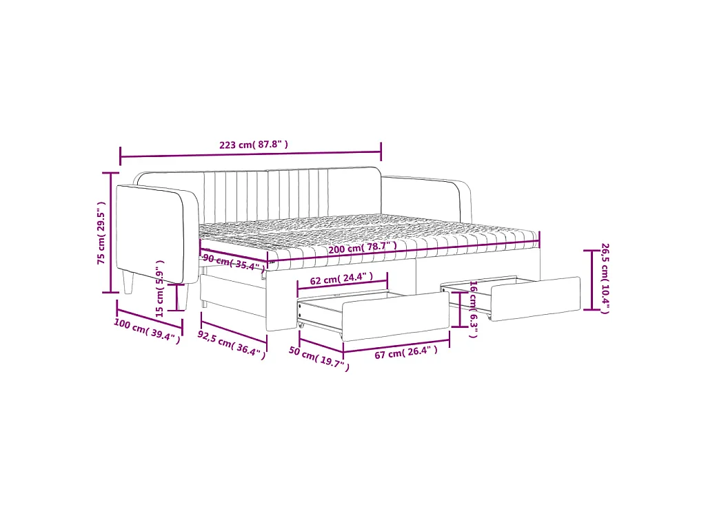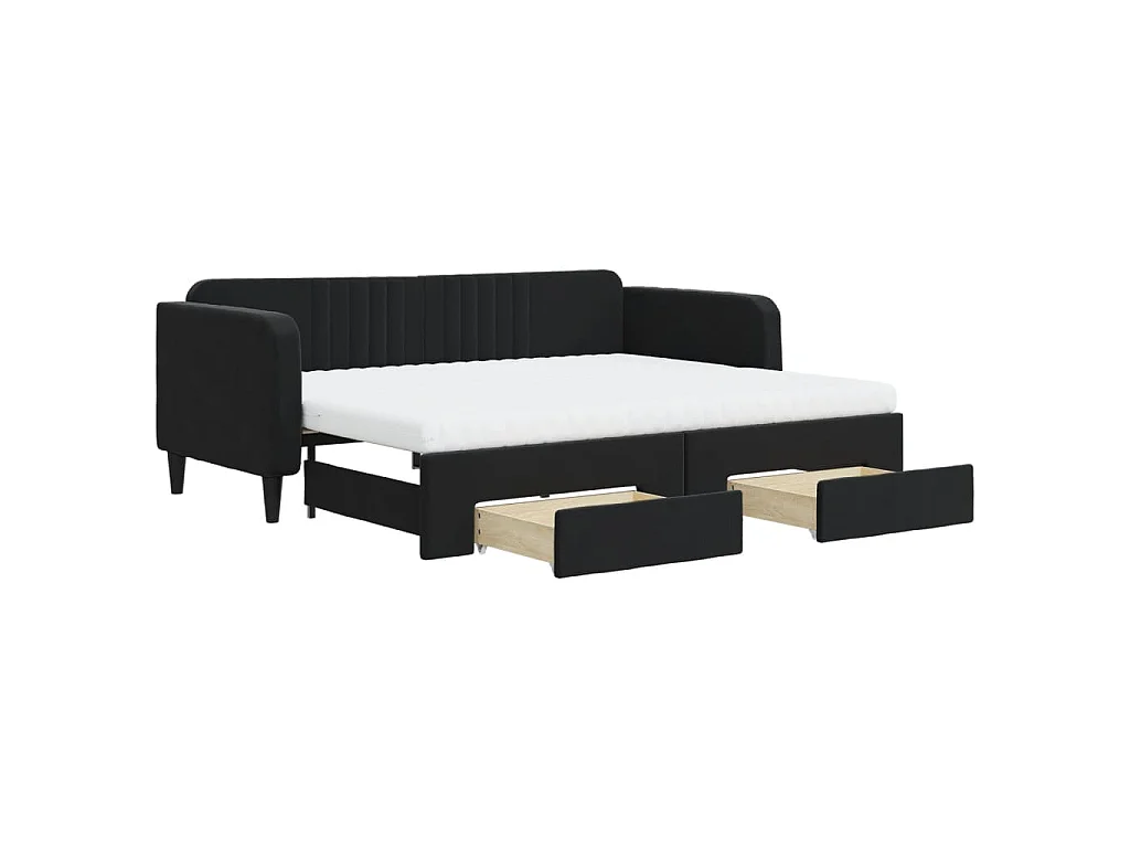 Lit de jour avec gigogne et tiroirs noir 90x200 cm velours