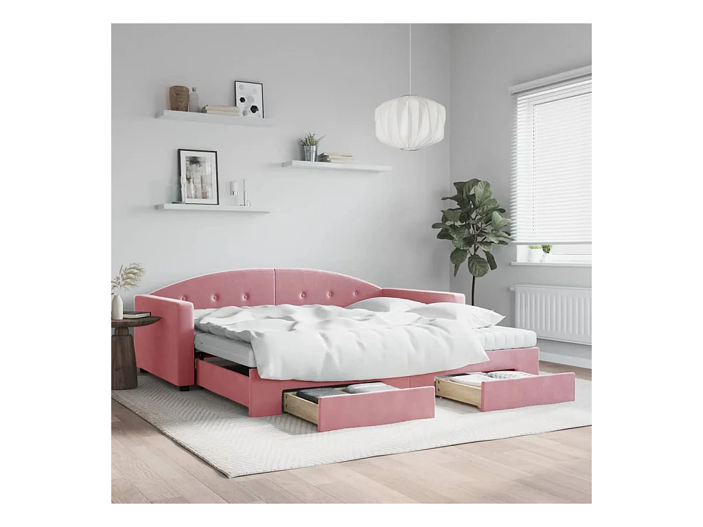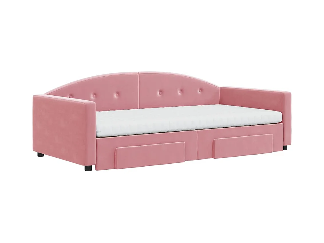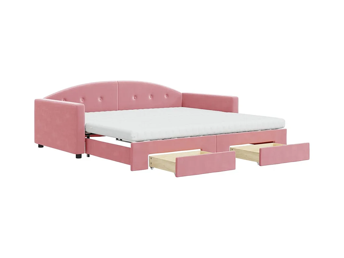Lit de jour avec gigogne et tiroirs rose 100x200 cm velours