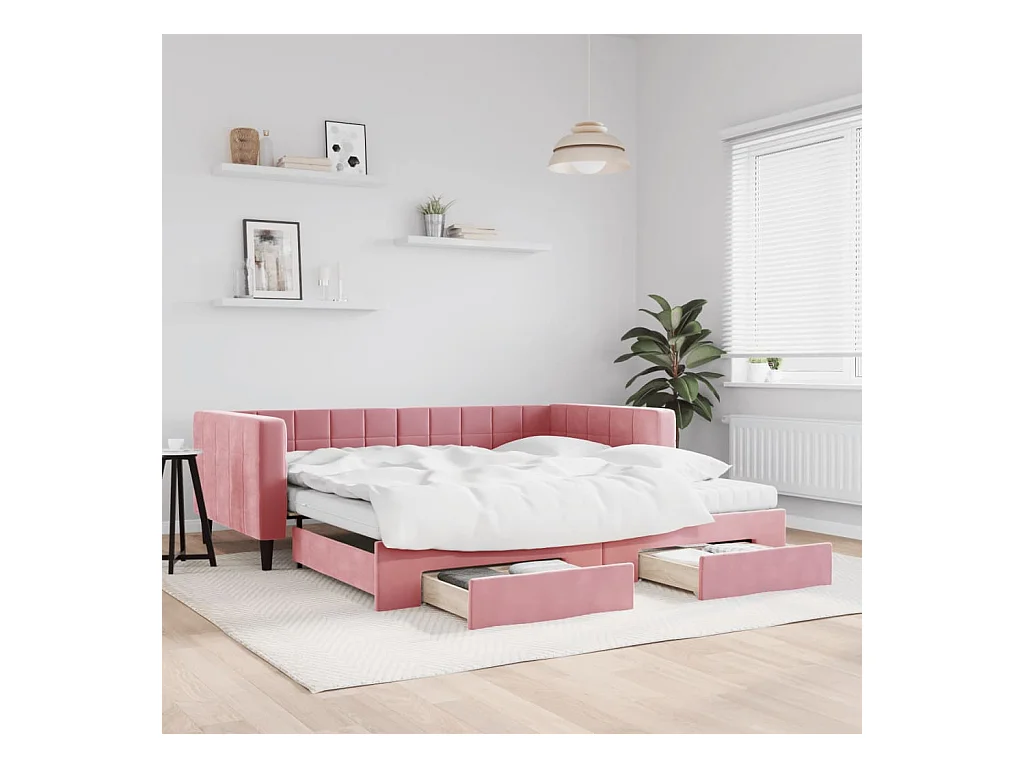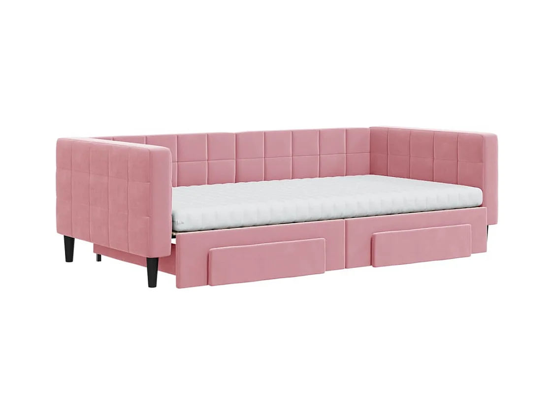 Lit de jour avec gigogne et tiroirs rose 100x200 cm velours
