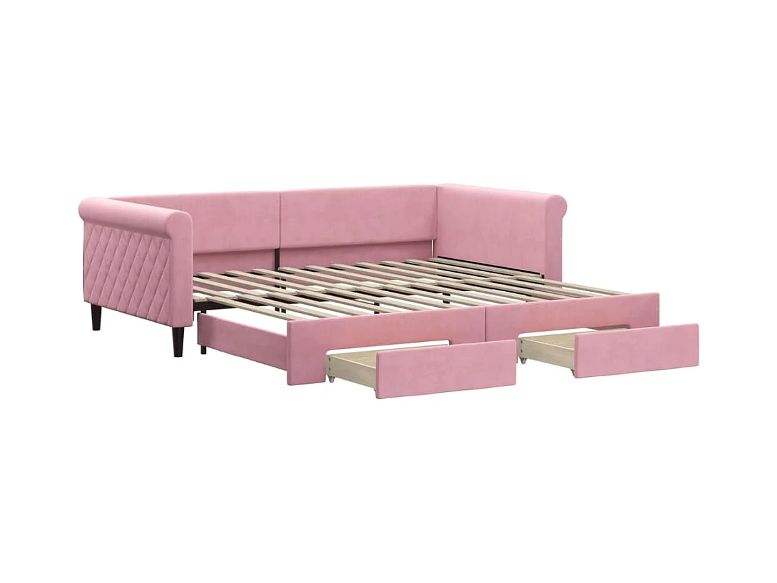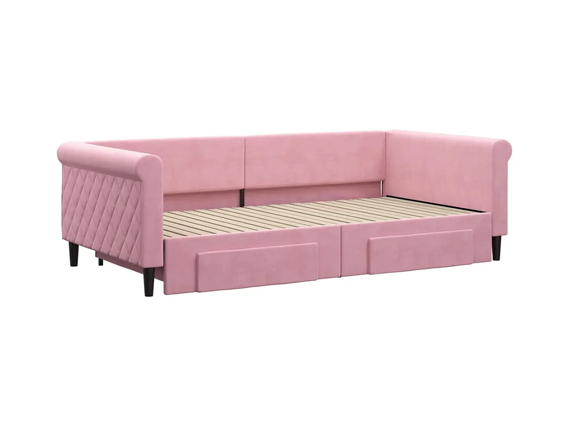 Lit de jour avec gigogne et tiroirs rose 100x200 cm velours