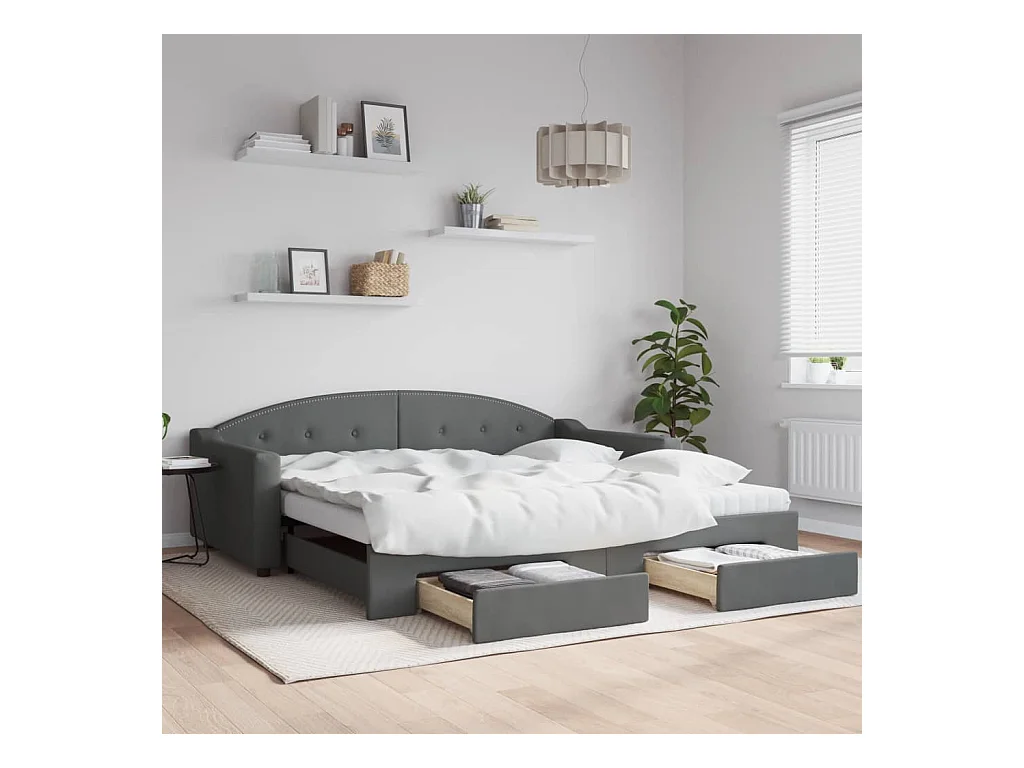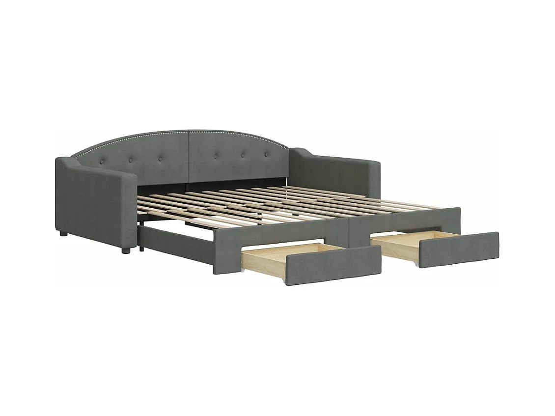 Lit de jour avec gigogne et tiroirs gris foncé 100x200 cm tissu