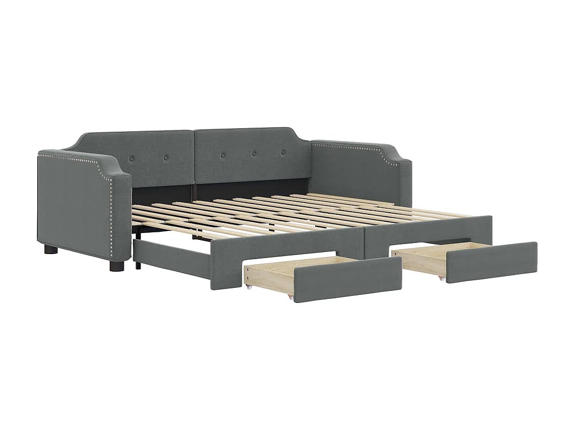 Lit de jour avec gigogne et tiroirs taupe 100x200 cm tissu