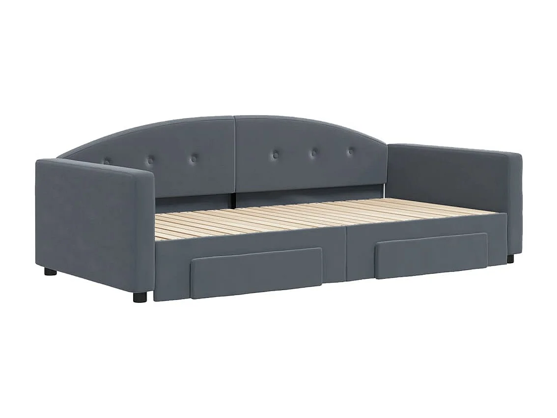 Lit de jour et gigogne et tiroirs gris foncé 100x200 cm velours