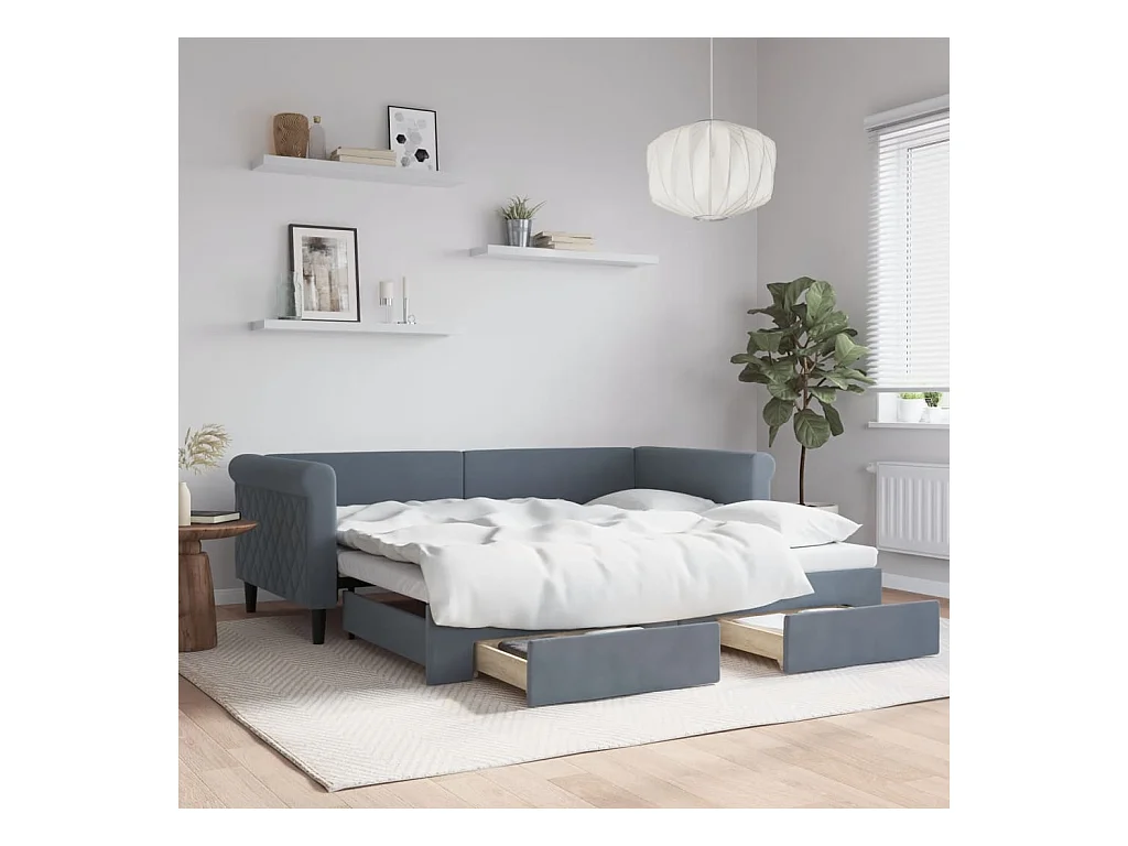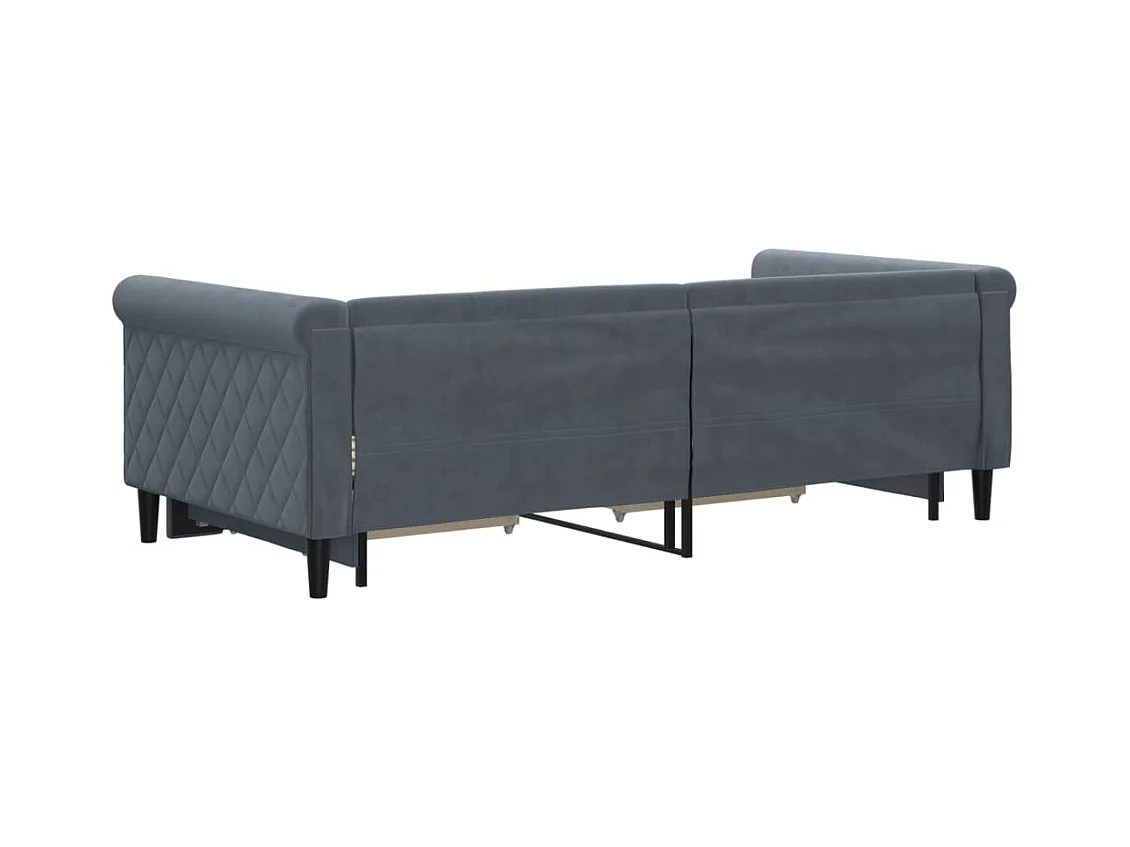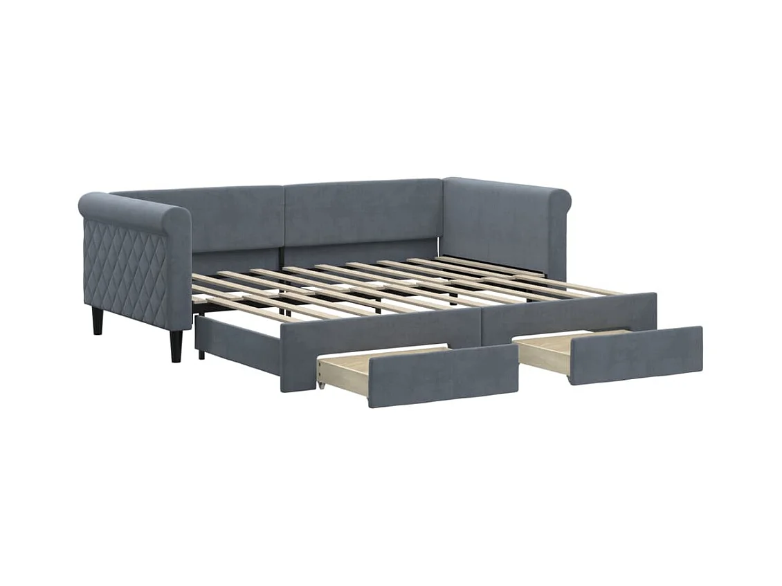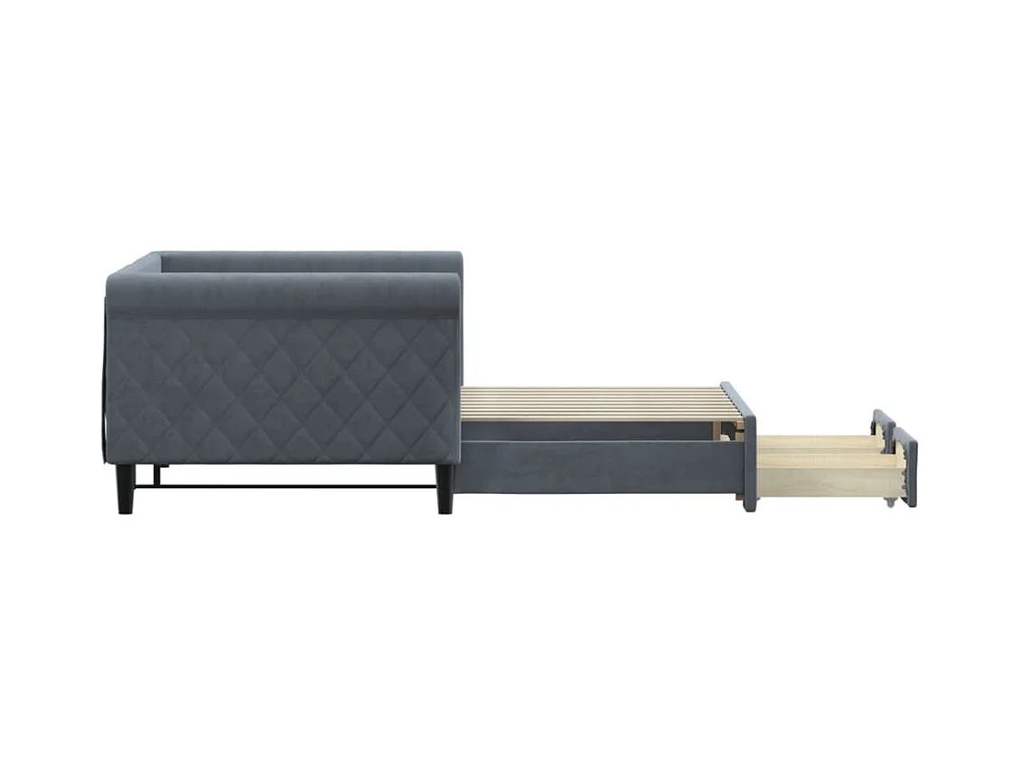 Lit de jour avec gigogne et tiroirs gris foncé 90x190cm velours