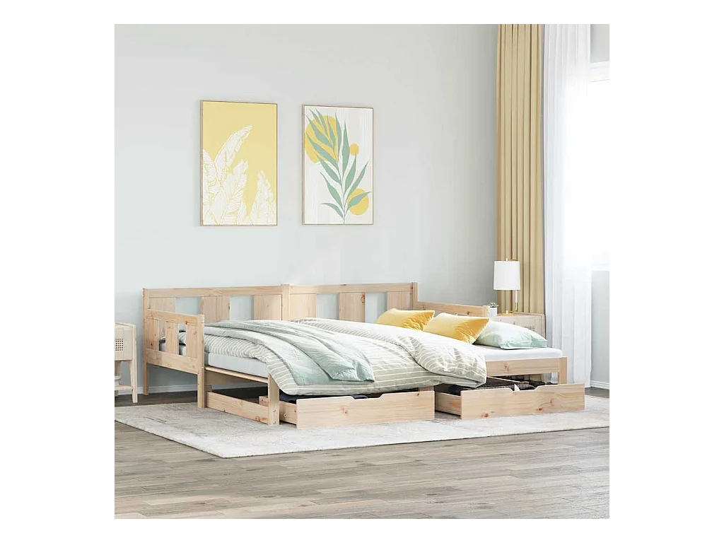 Lit de jour avec gigogne et tiroirs sans matelas 90x190 cm