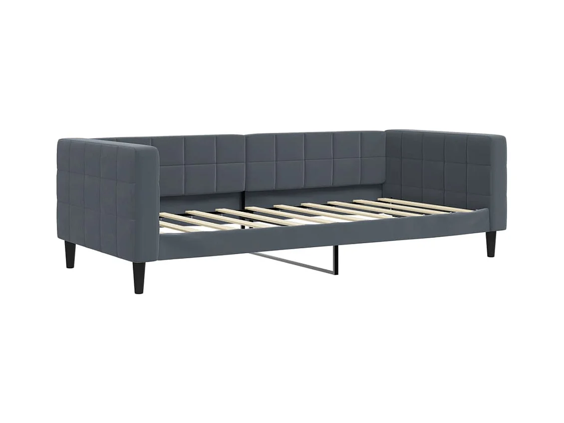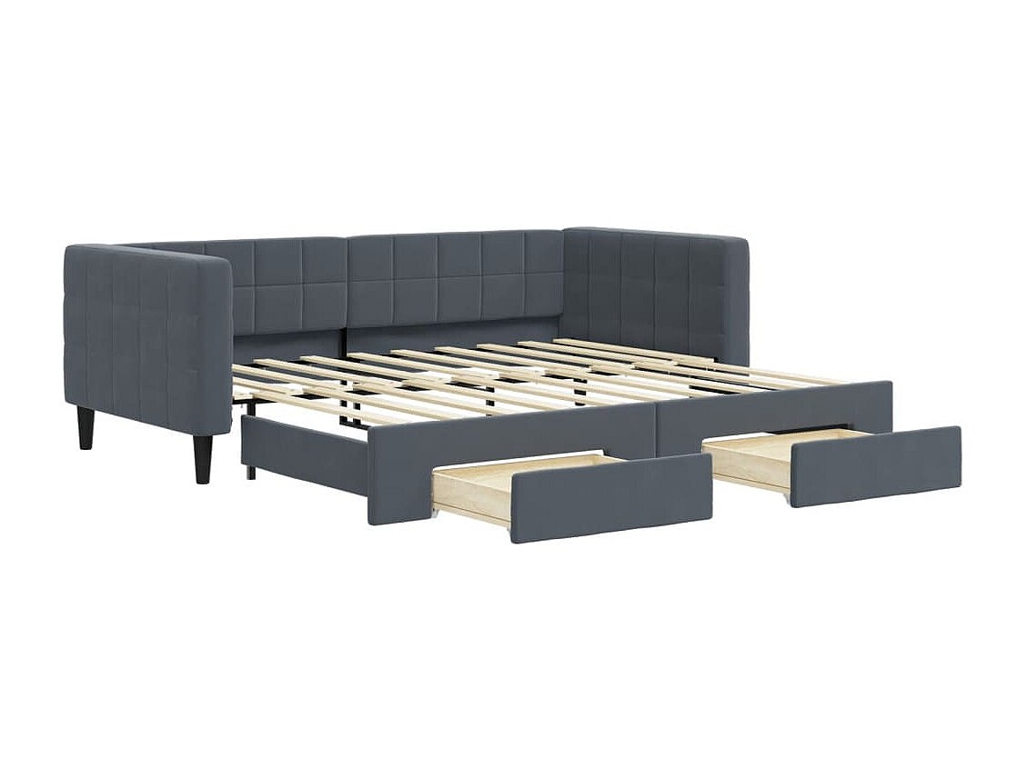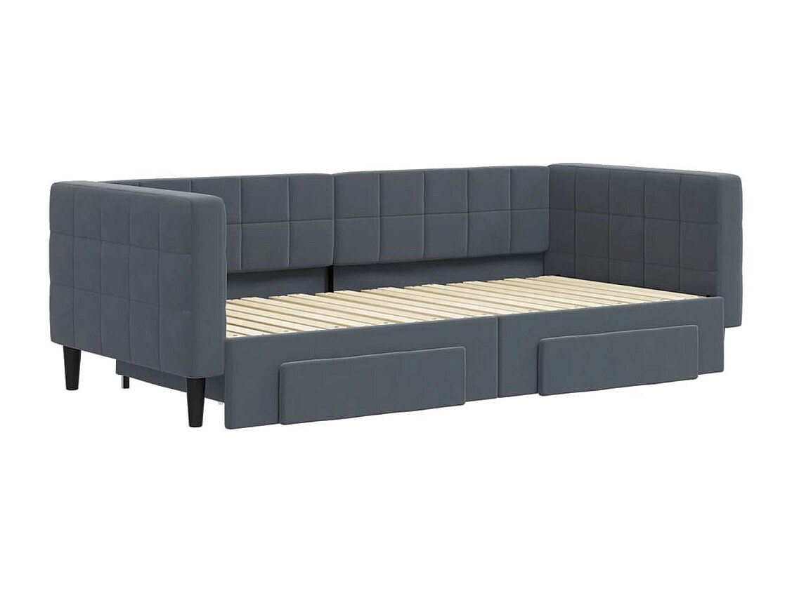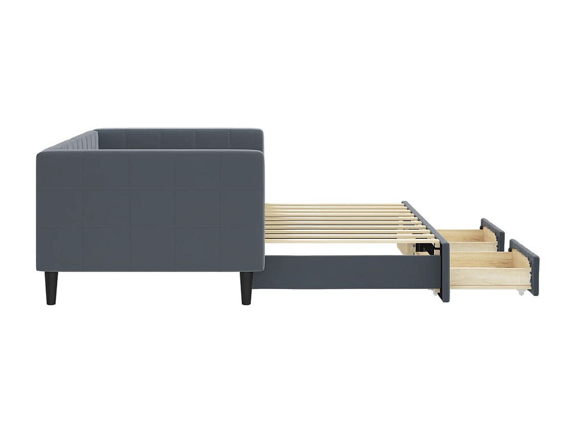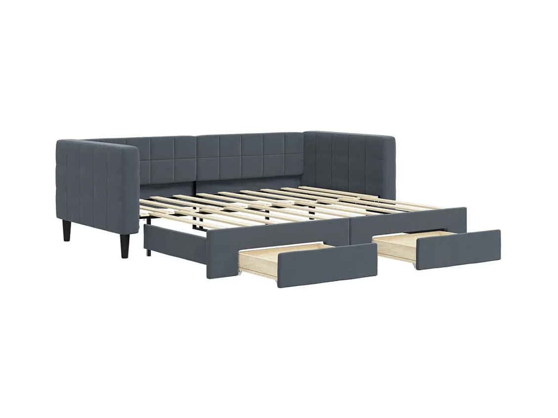 Lit de jour avec gigogne et tiroirs gris foncé 90x190cm velours