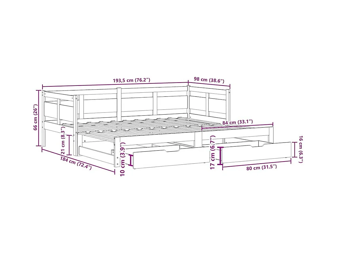 Lit de jour et lit gigogne sans matelas 90x190 cm bois massif
