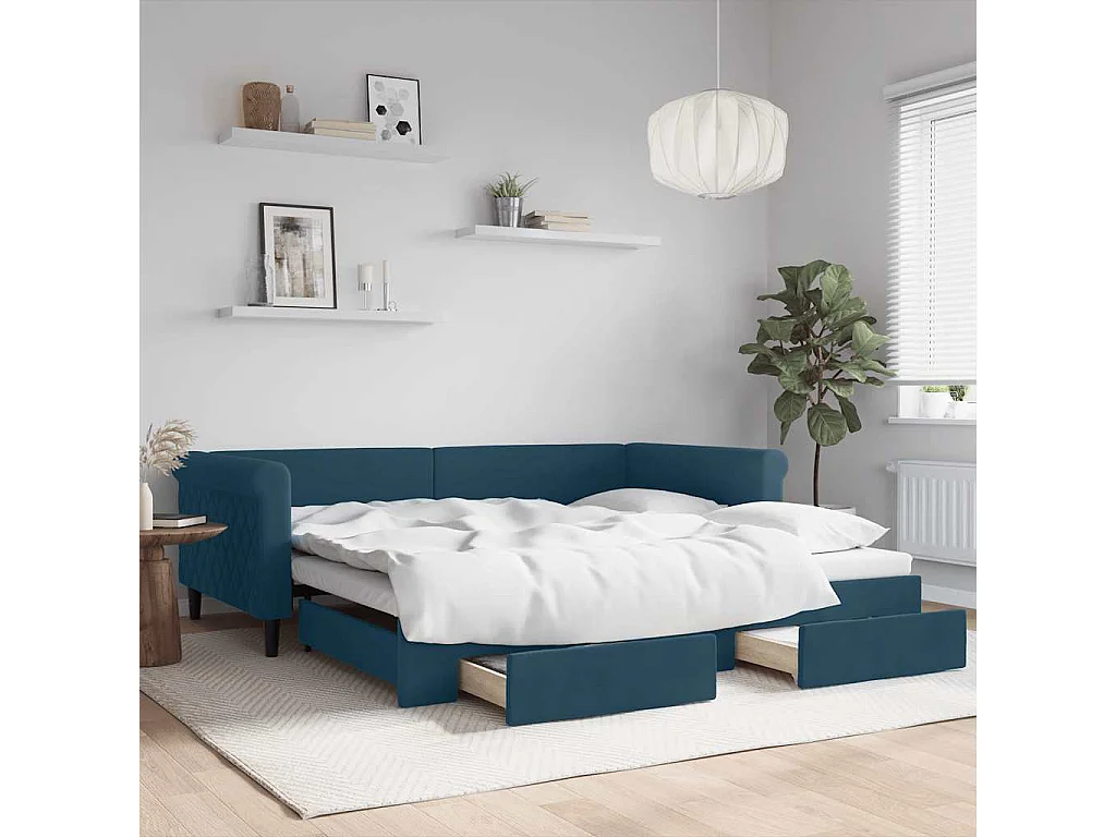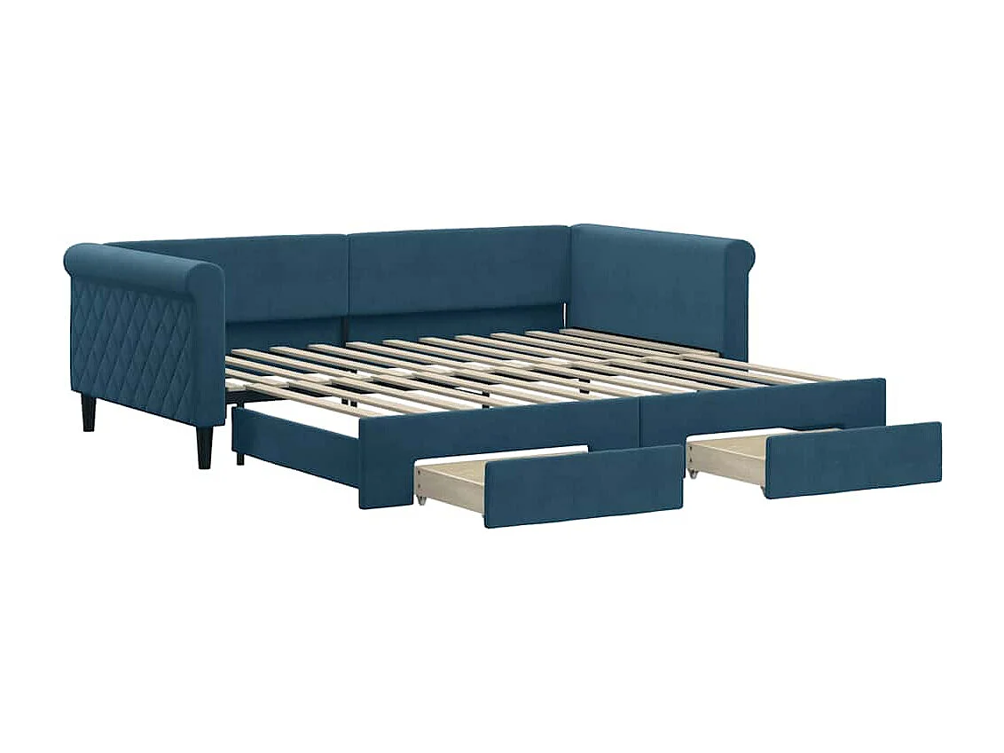 Lit de jour avec gigogne et tiroirs sans matelas bleu 100x200cm