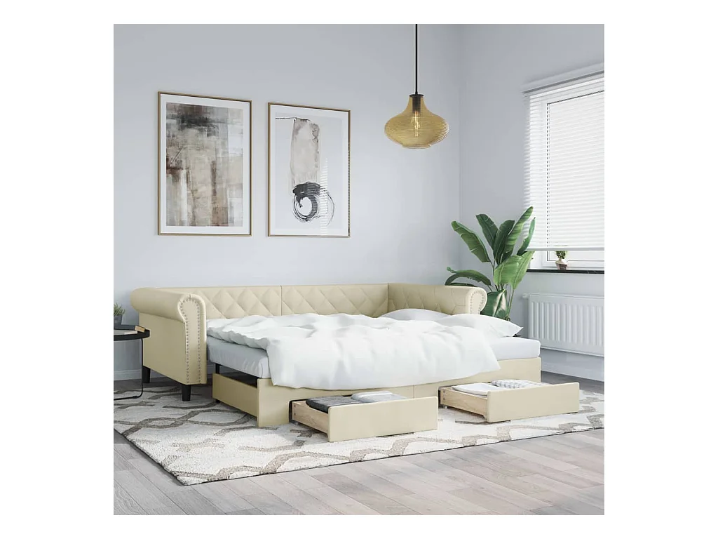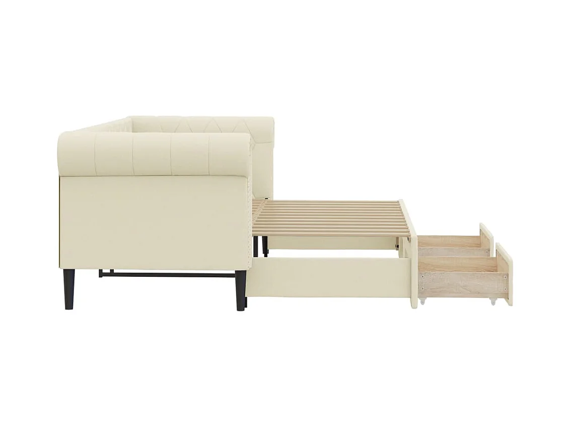 Lit de jour avec gigogne et tiroirs sans matelas crème 90x200cm