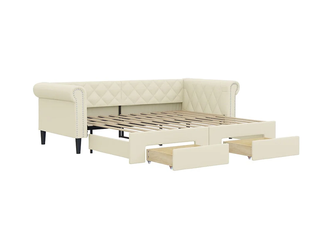 Lit de jour avec gigogne et tiroirs crème 90x200 cm similicuir