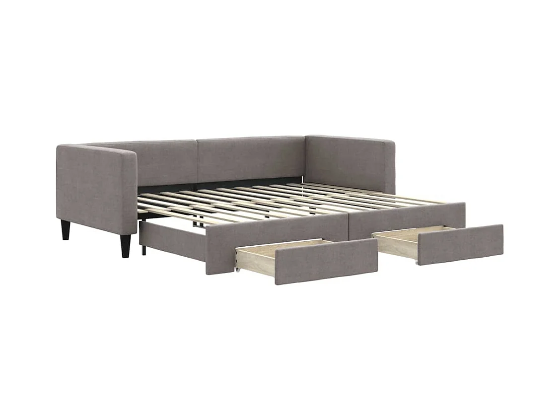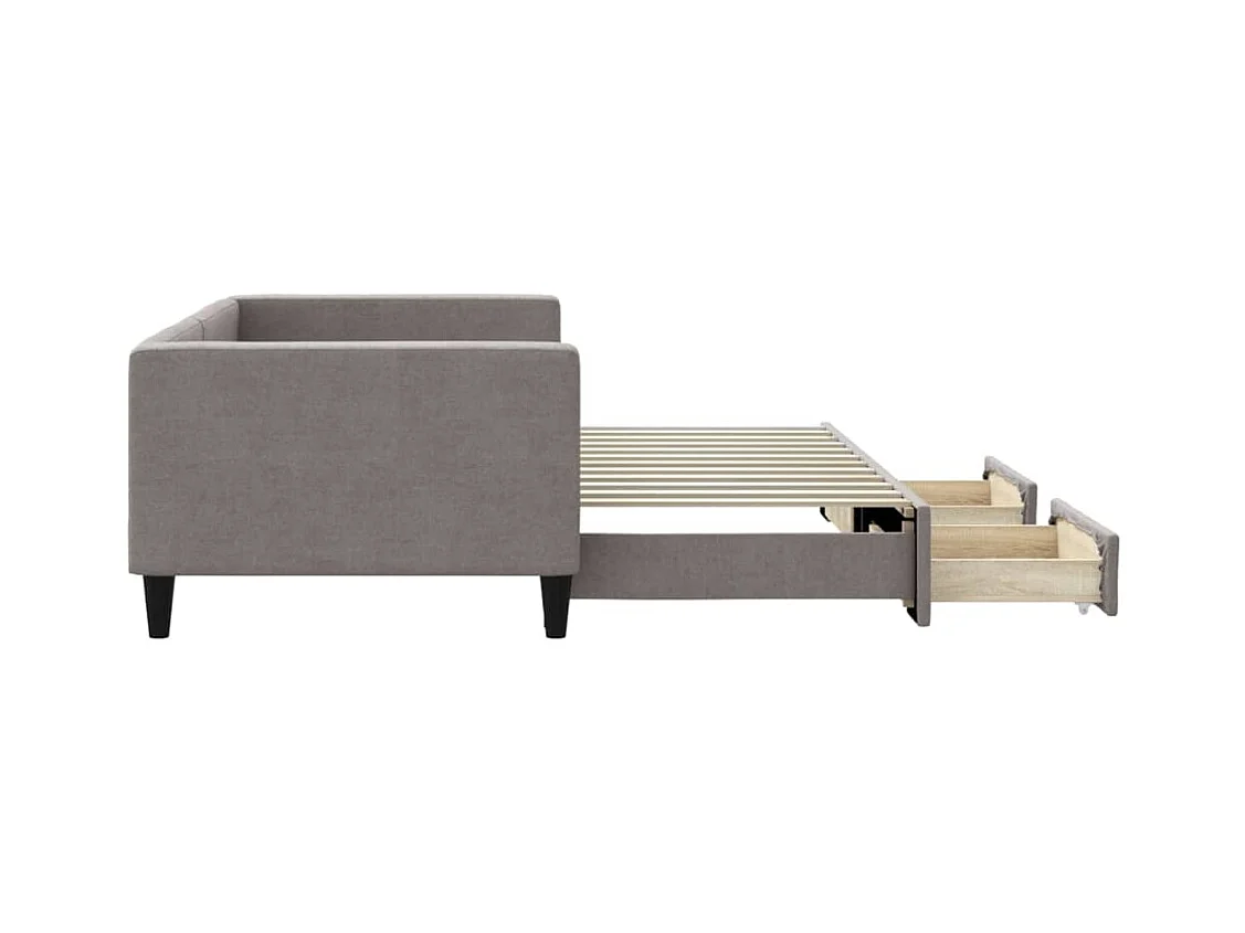 Lit de jour avec gigogne et tiroirs sans matelas taupe 90x200cm