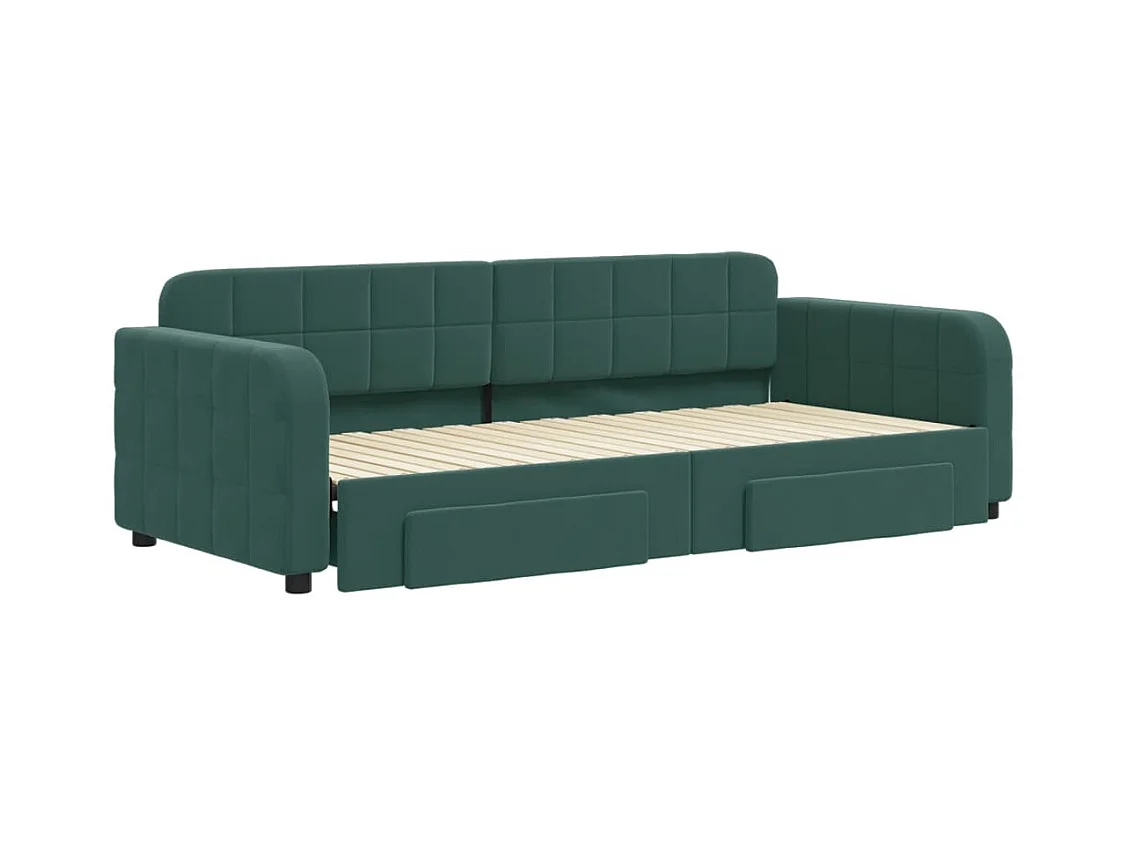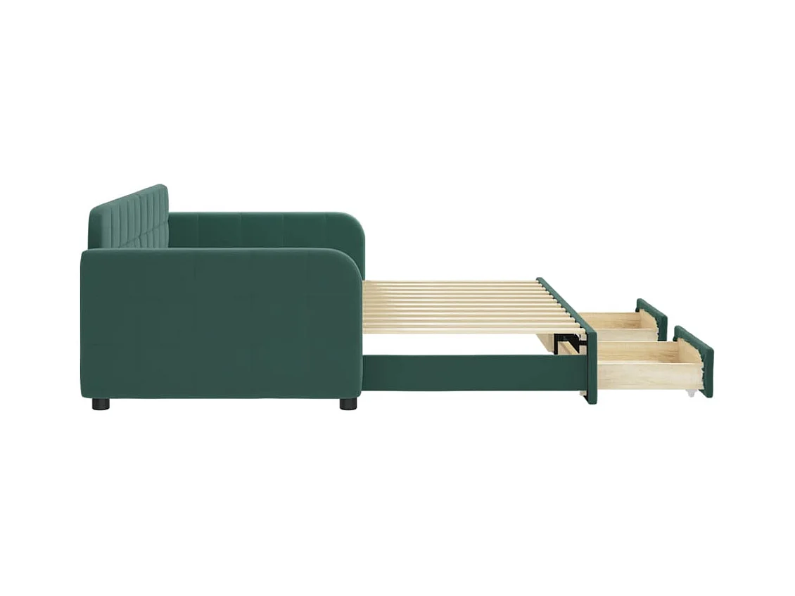 Slaapbank onderschuifbed en lades 90x200 cm fluweel donkergroen