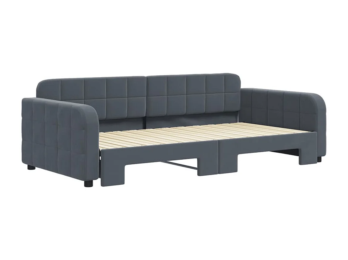 Lit de jour et gigogne et matelas gris foncé 100x200 cm velours