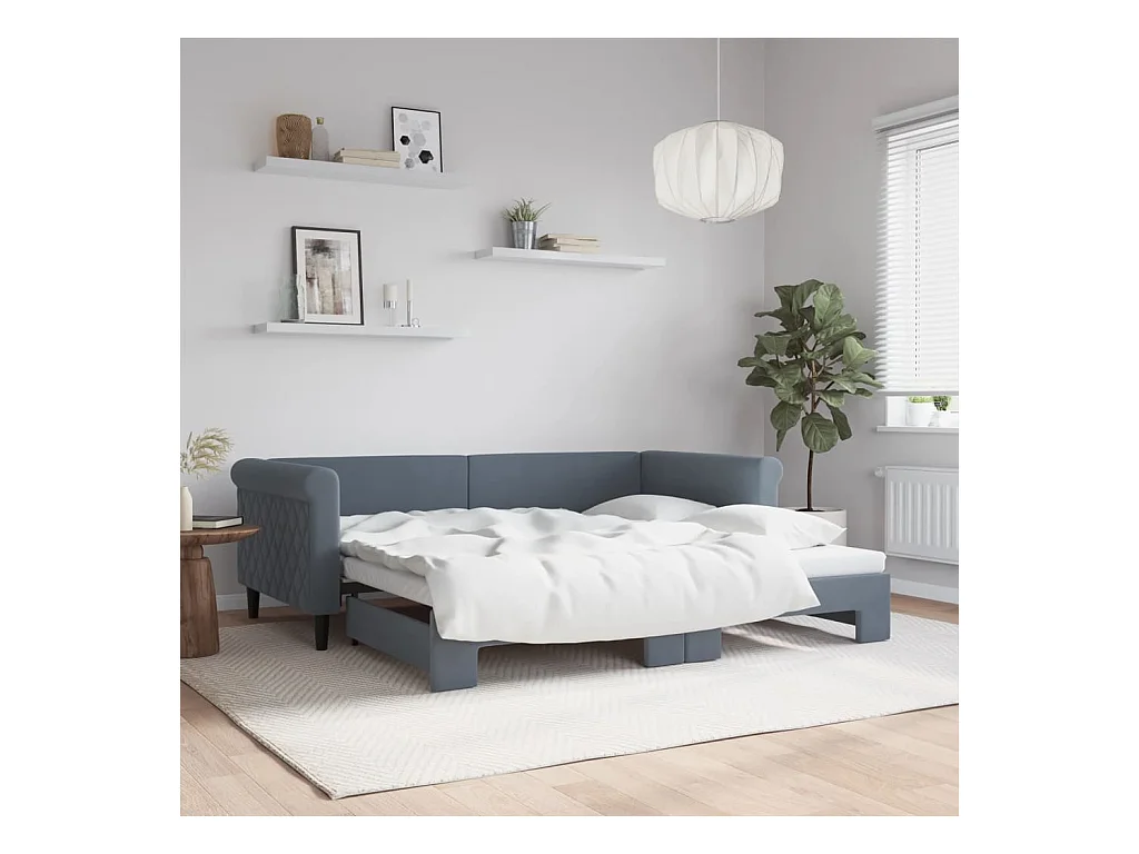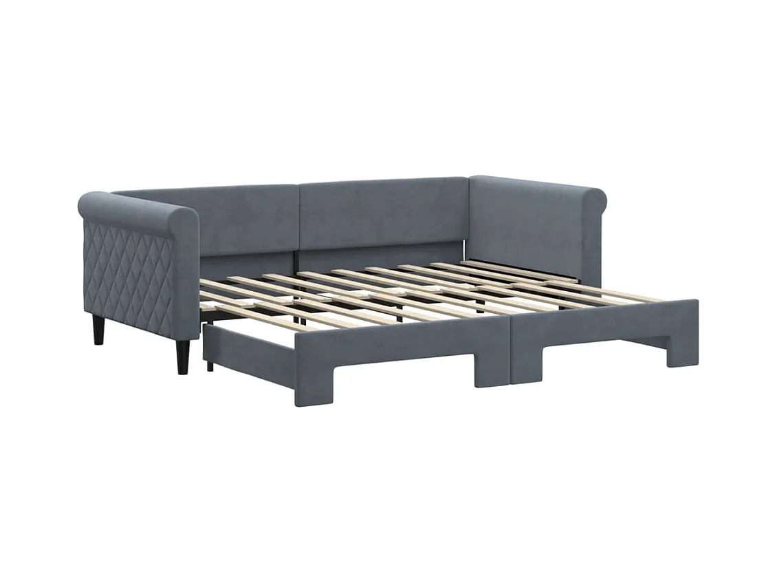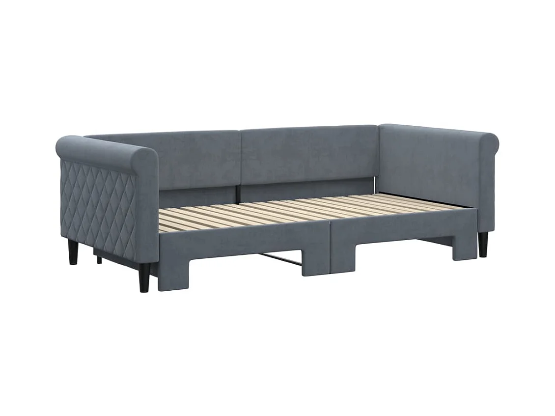 Lit de jour avec gigogne et matelas gris foncé 90x190cm velours