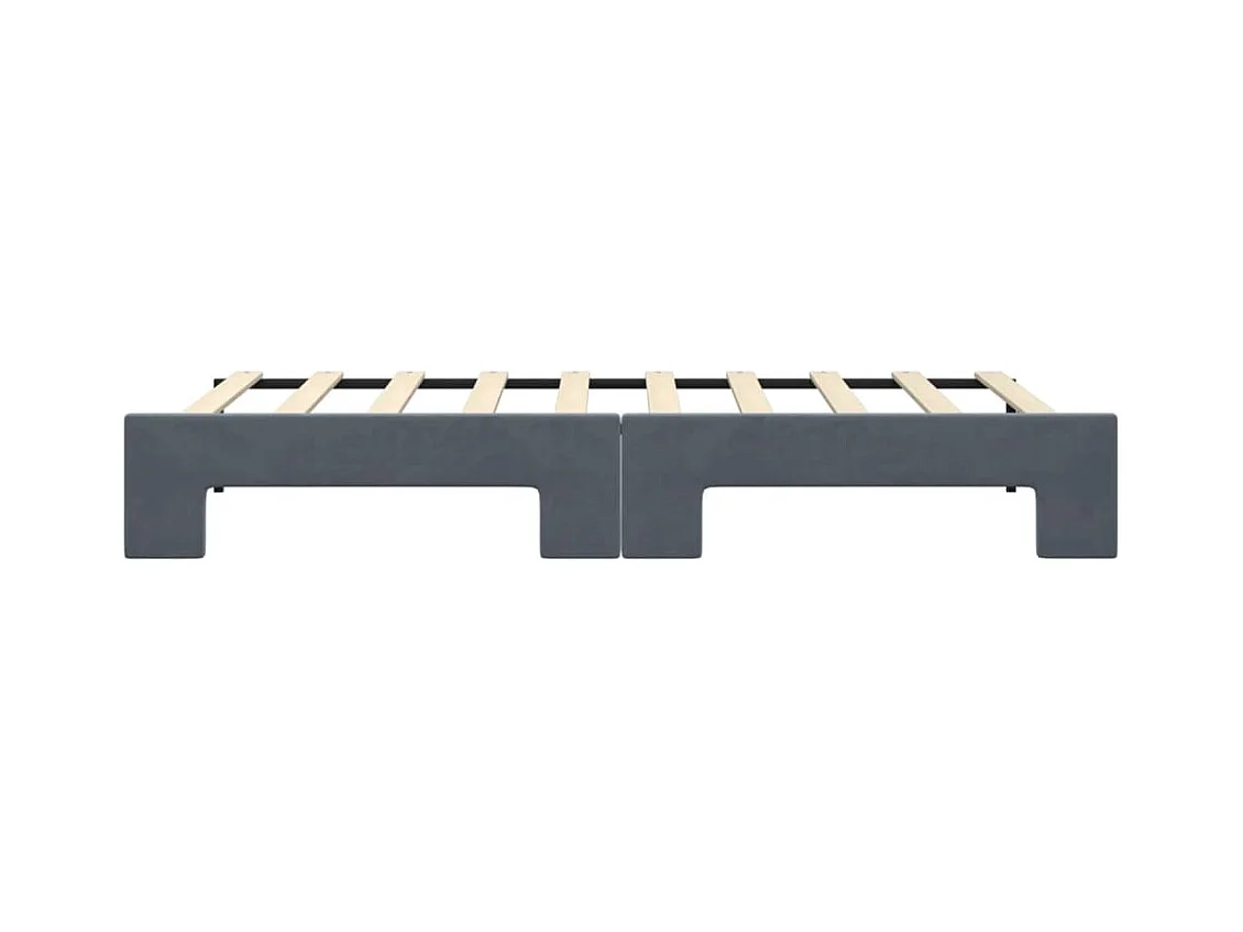Lit de jour avec gigogne et matelas gris clair 90x190cm velours