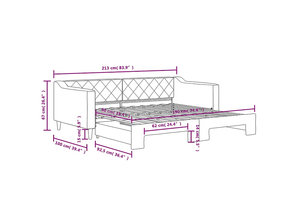 Lit de jour avec gigogne sans matelas gris foncé 90x190 cm