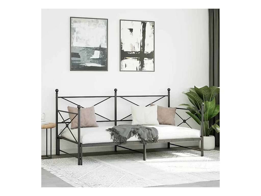 Lit de jour avec gigogne sans matelas noir 100x200 cm acier