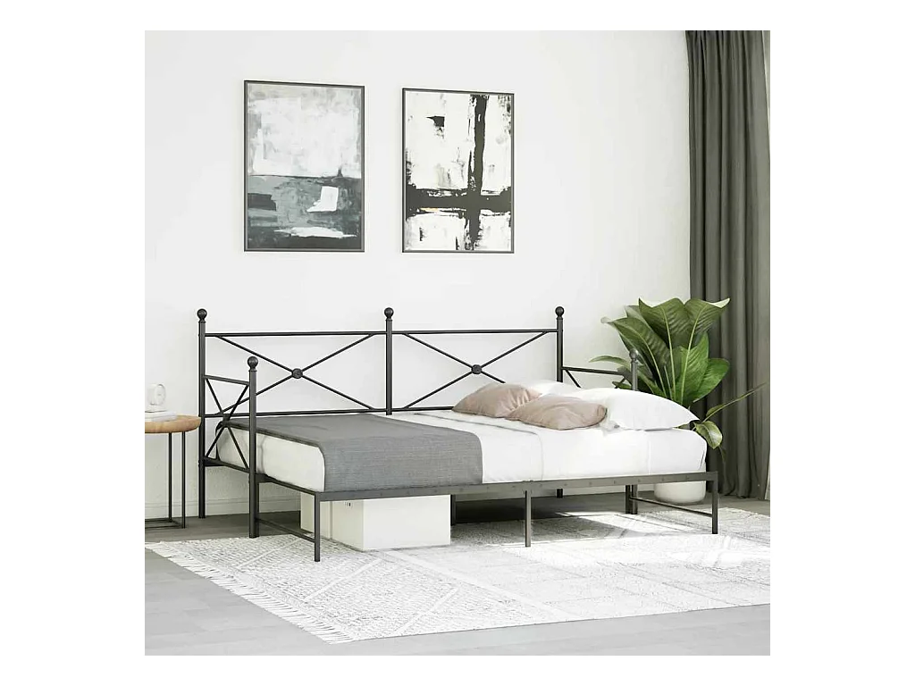 Canapé-lit en fer forgé 90x200 cm - Avec 2 tiroirs - Structure en métal - Avec compartiment de rangement - noir