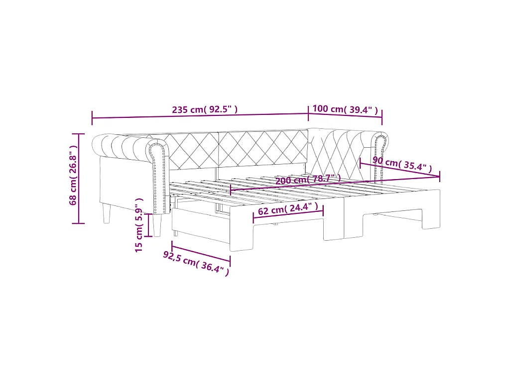 Lit de jour avec gigogne sans matelas blanc 90x200 cm