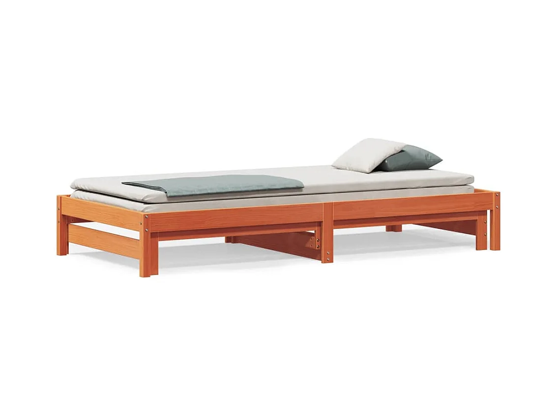 Lit gigogne - 90x200 cm cire marron pin massif FR70978