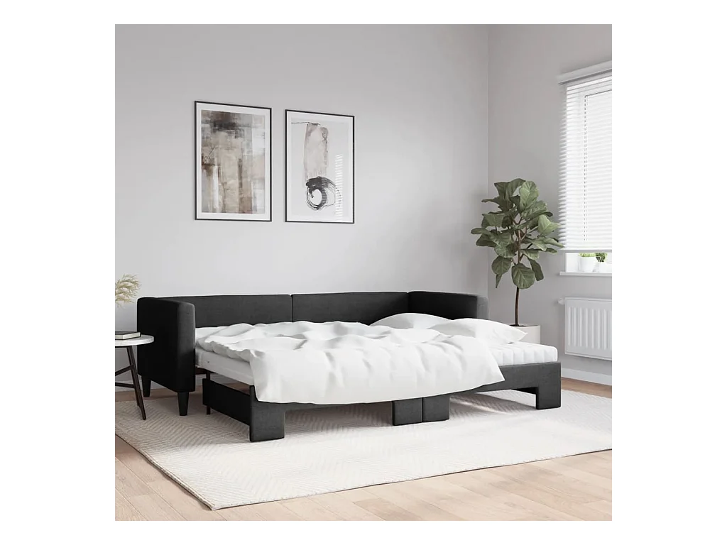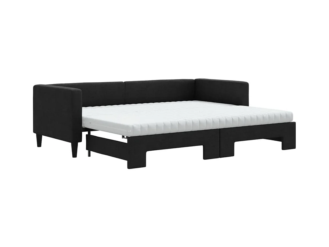 Lit de jour avec lit gigogne et matelas noir 80x200 cm tissu