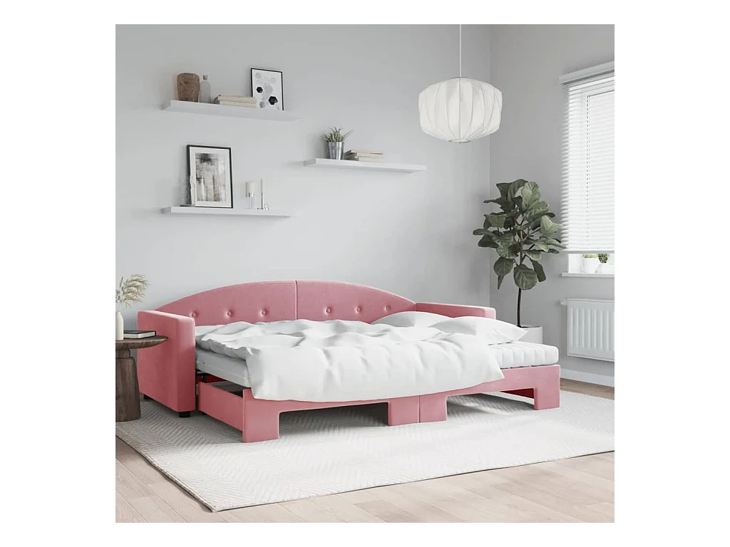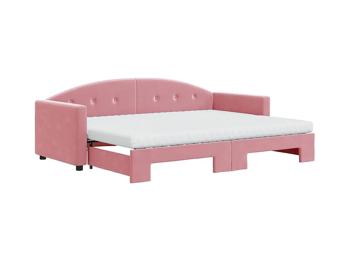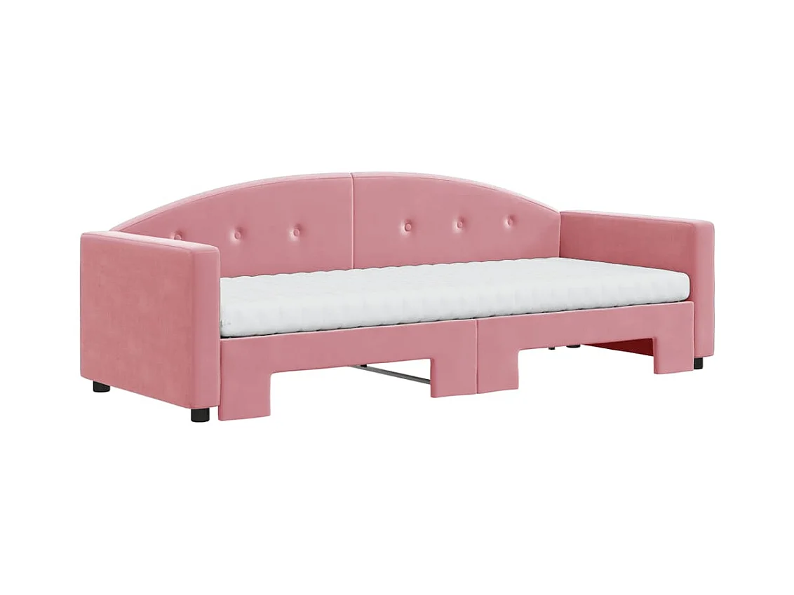 Slaapbank onderschuifbed en matrassen 80x200 cm fluweel roze