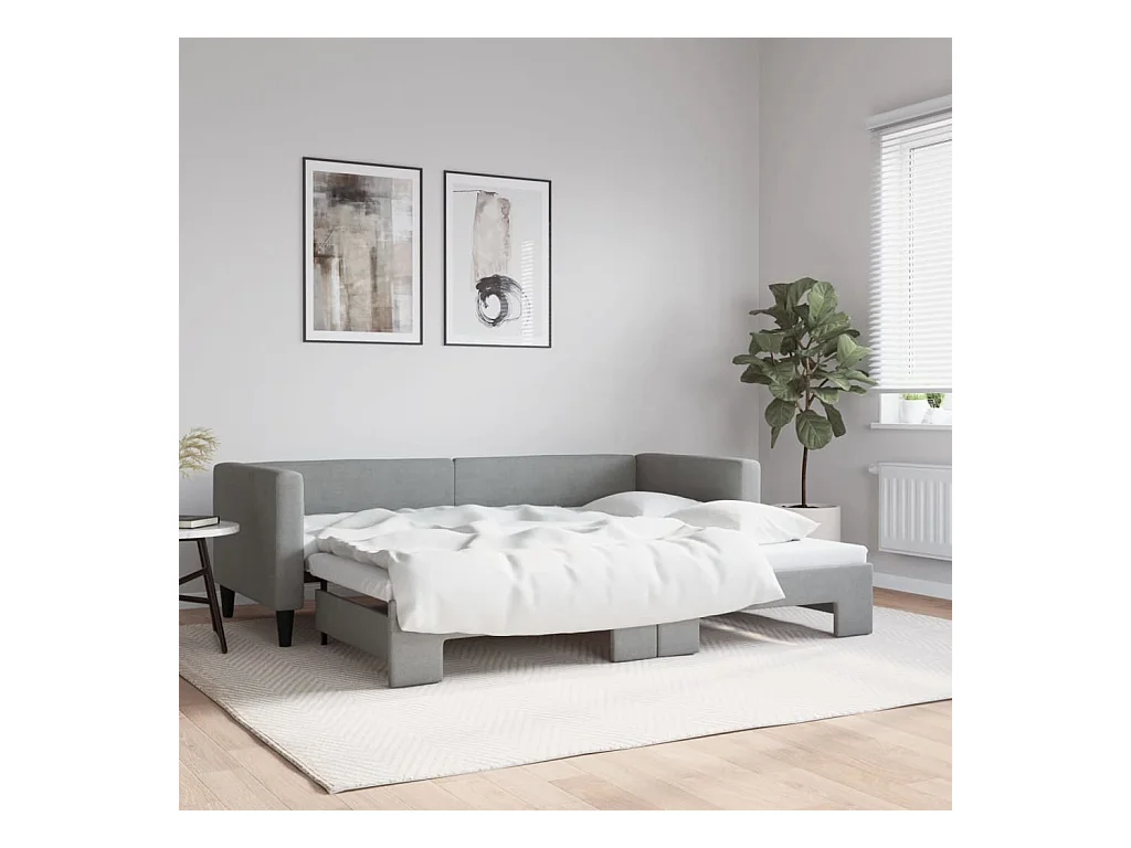 Slaapbank met onderschuifbed 80x200 cm stof lichtgrijs
