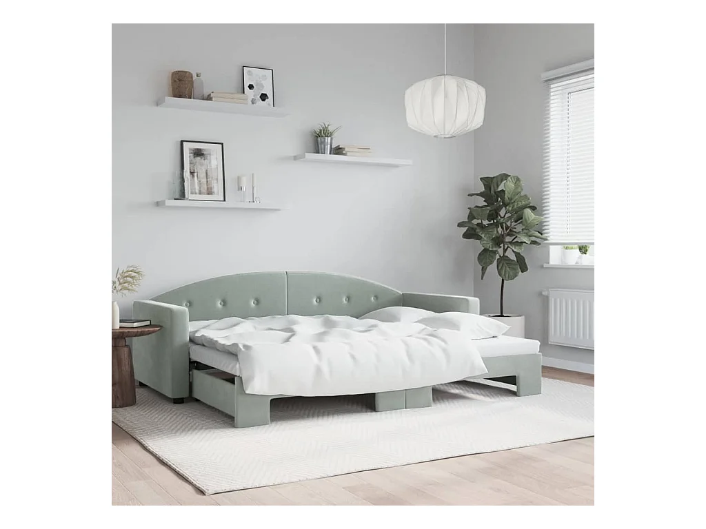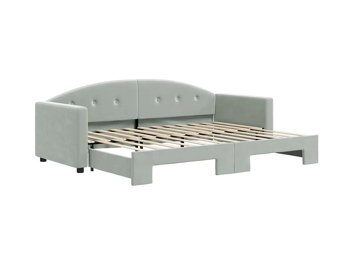 Slaapbank met onderschuifbed 80x200 cm fluweel lichtgrijs