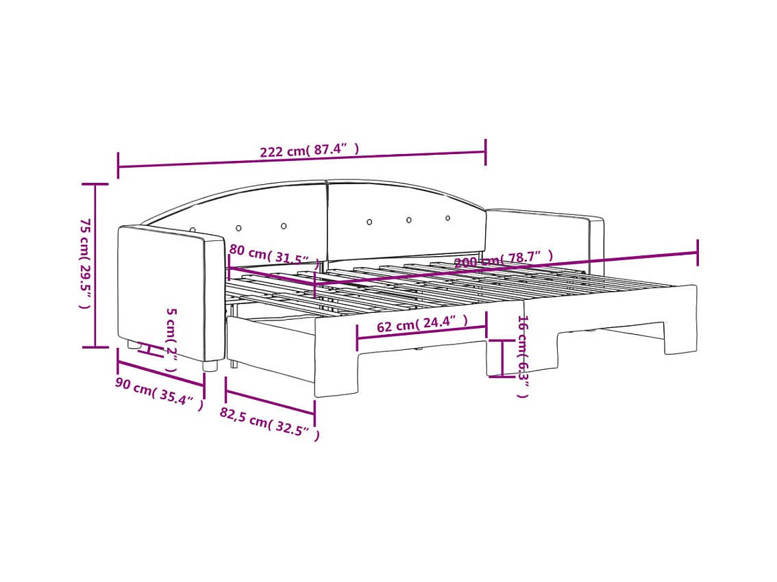 Slaapbank onderschuifbed matrassen 80x200cm fluweel donkergrijs