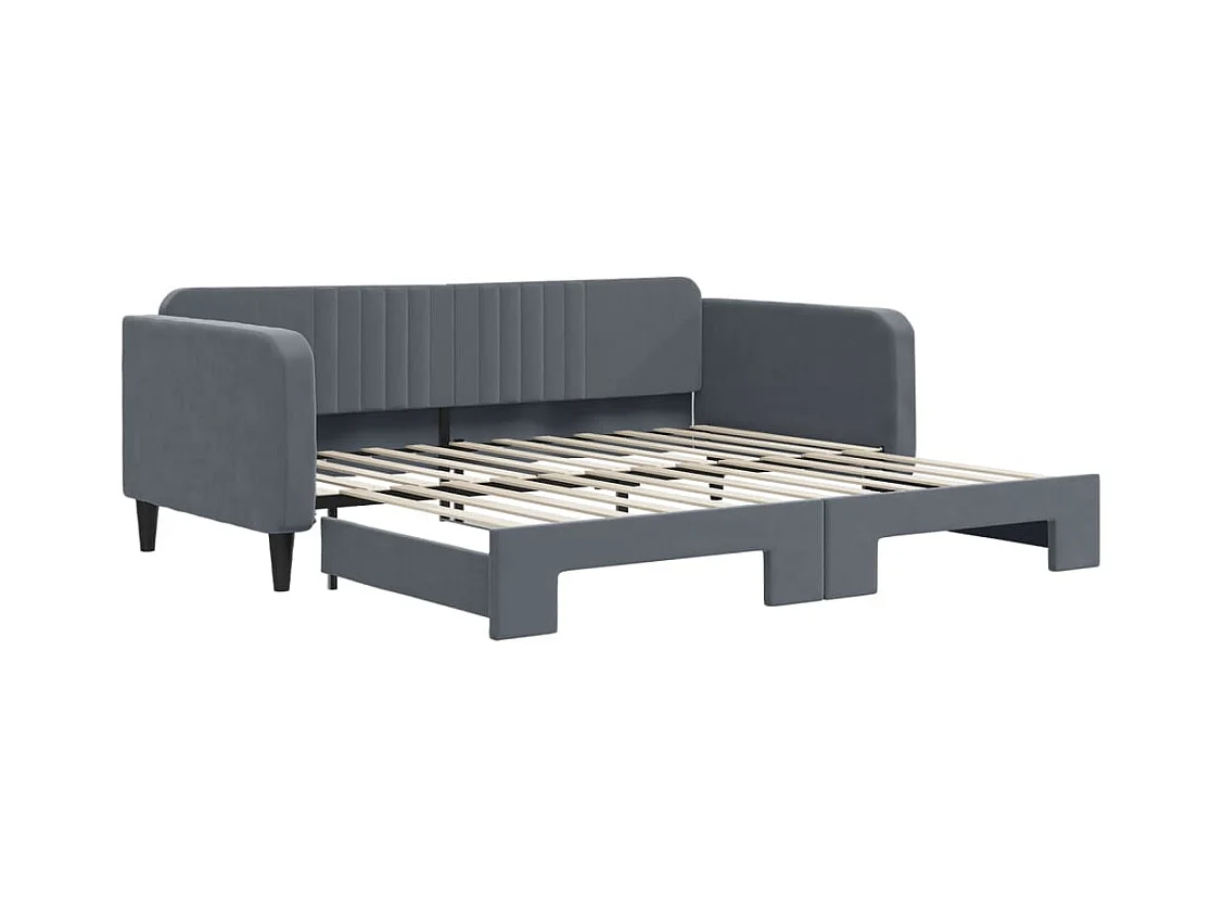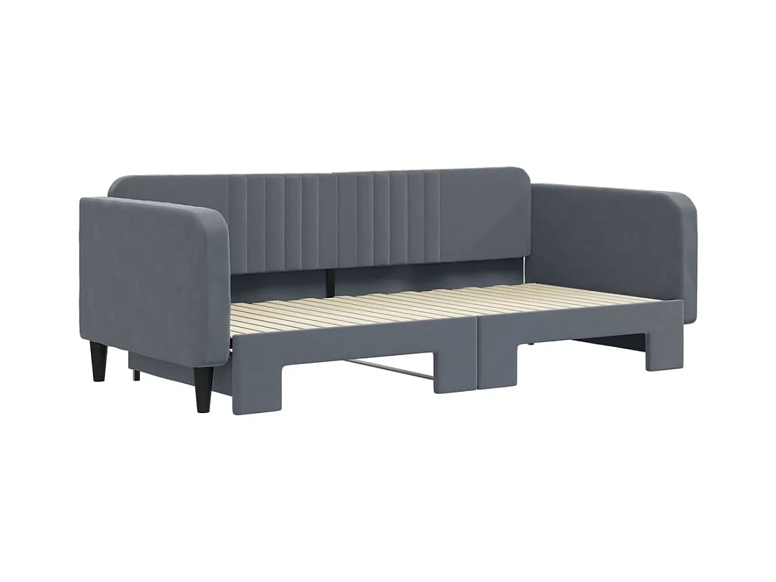 Slaapbank onderschuifbed matrassen 100x200cm fluweeldonkergrijs
