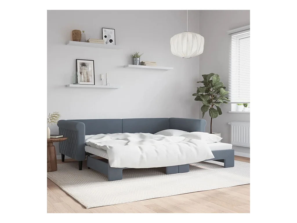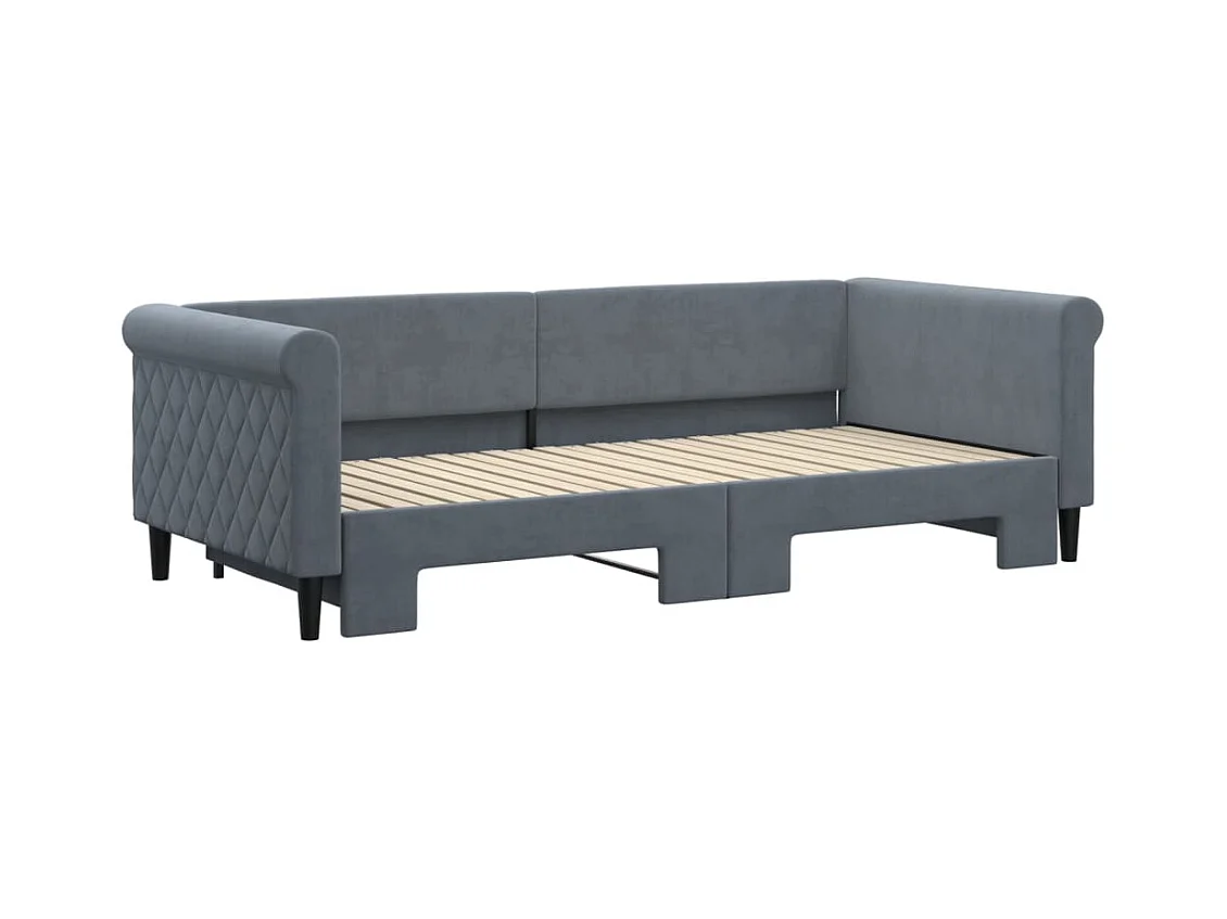 Slaapbank onderschuifbed matrassen 90x200cm fluweel donkergrijs