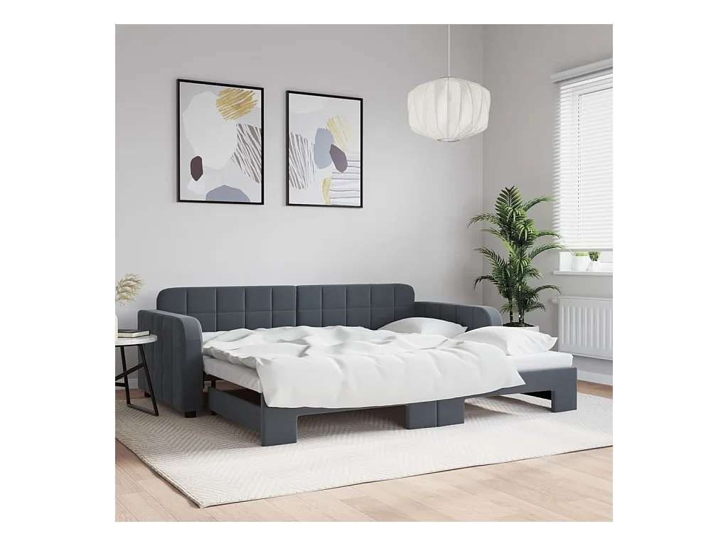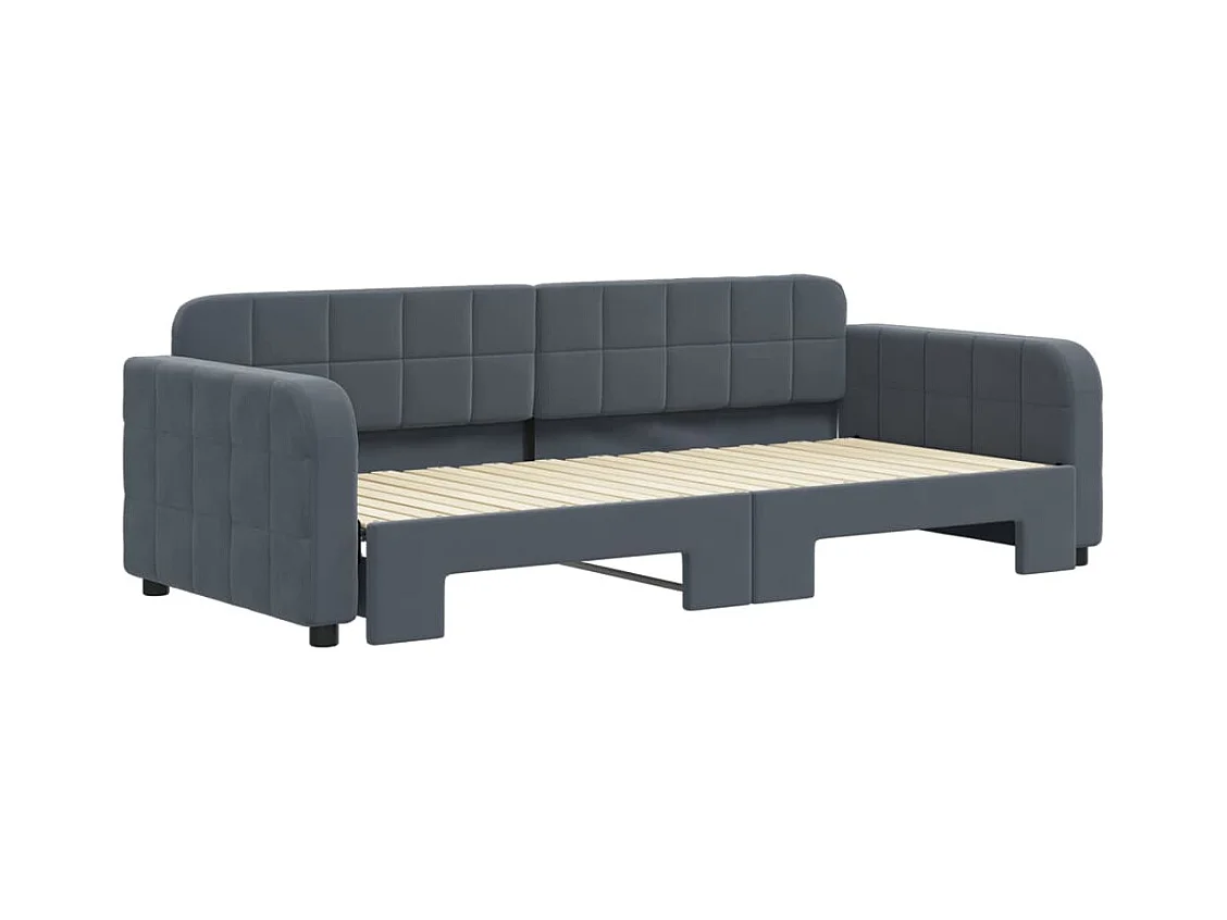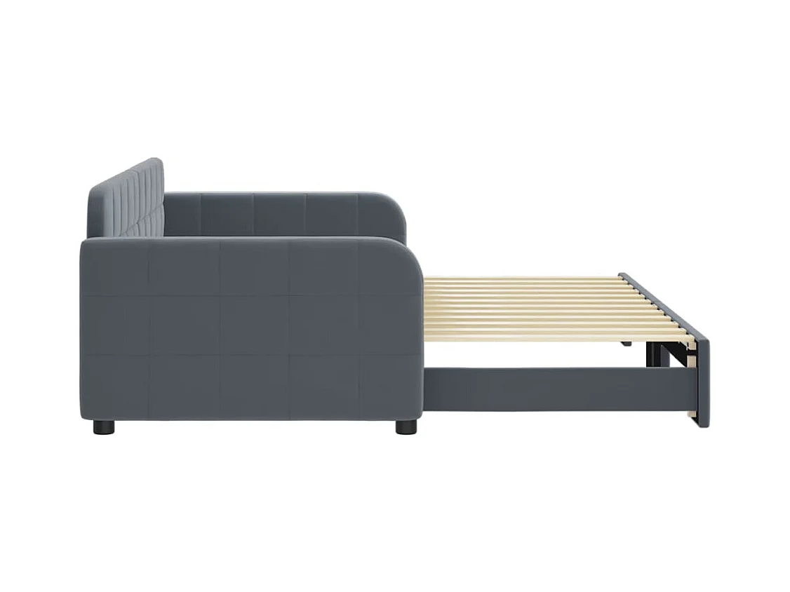 Slaapbank onderschuifbed matrassen 90x200cm fluweel donkergrijs