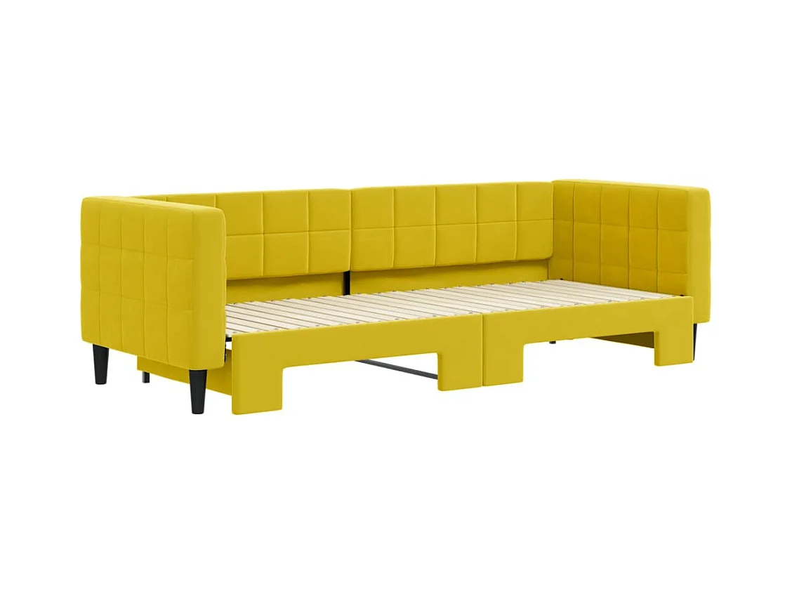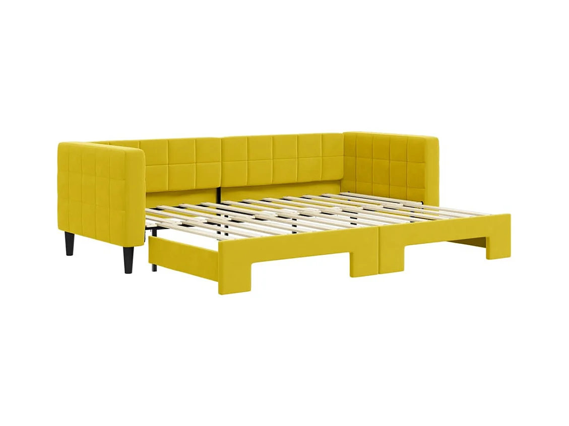 Lit de jour avec lit gigogne et matelas jaune 80x200 cm velours