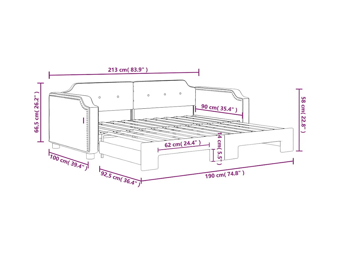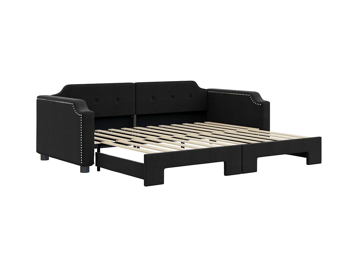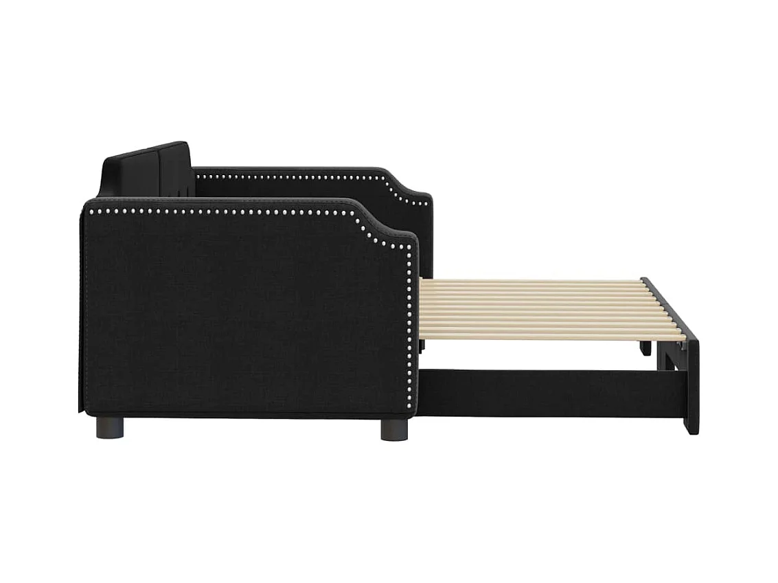 Lit de jour avec lit gigogne noir 90x190 cm tissu