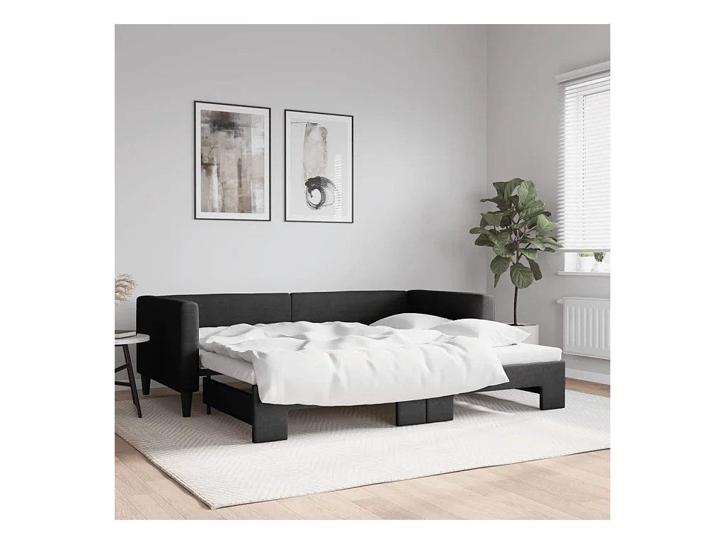 Lit de jour avec lit gigogne noir 90x200 cm tissu